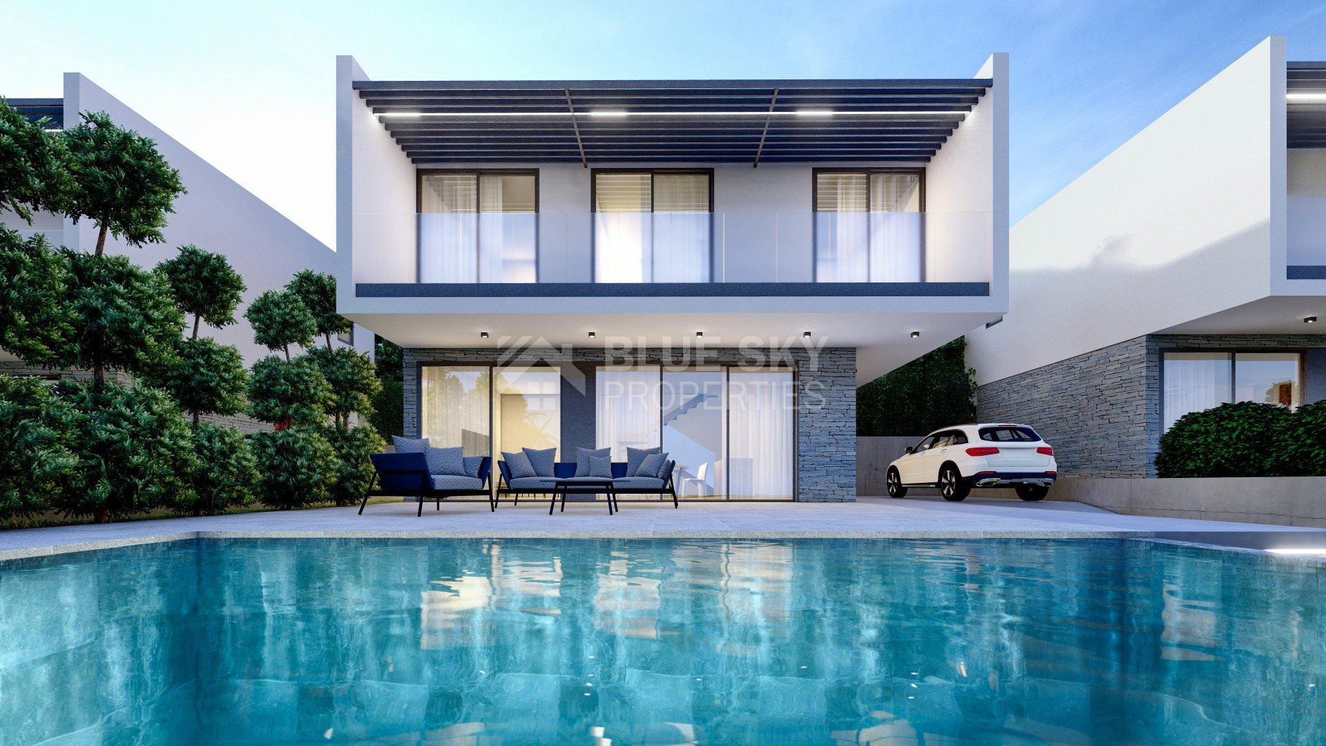 For sale (off-plan) 3 bedroom modern Villa in Pegeia, Paphos. It is located on a hilltop offering unobstructed panoramic sea views and it has easy access to the local amenities and facilities of the surrounding area. Paphos center is reachable within 20 minutes drive and 35 minutes away from Paphos international airport. The property consists 3 bedrooms, 2 bathroom, 1 en-suite bathroom in master bedroom, guest wc, open plan living/kitchen area, private pool, garden, uncovered parking.