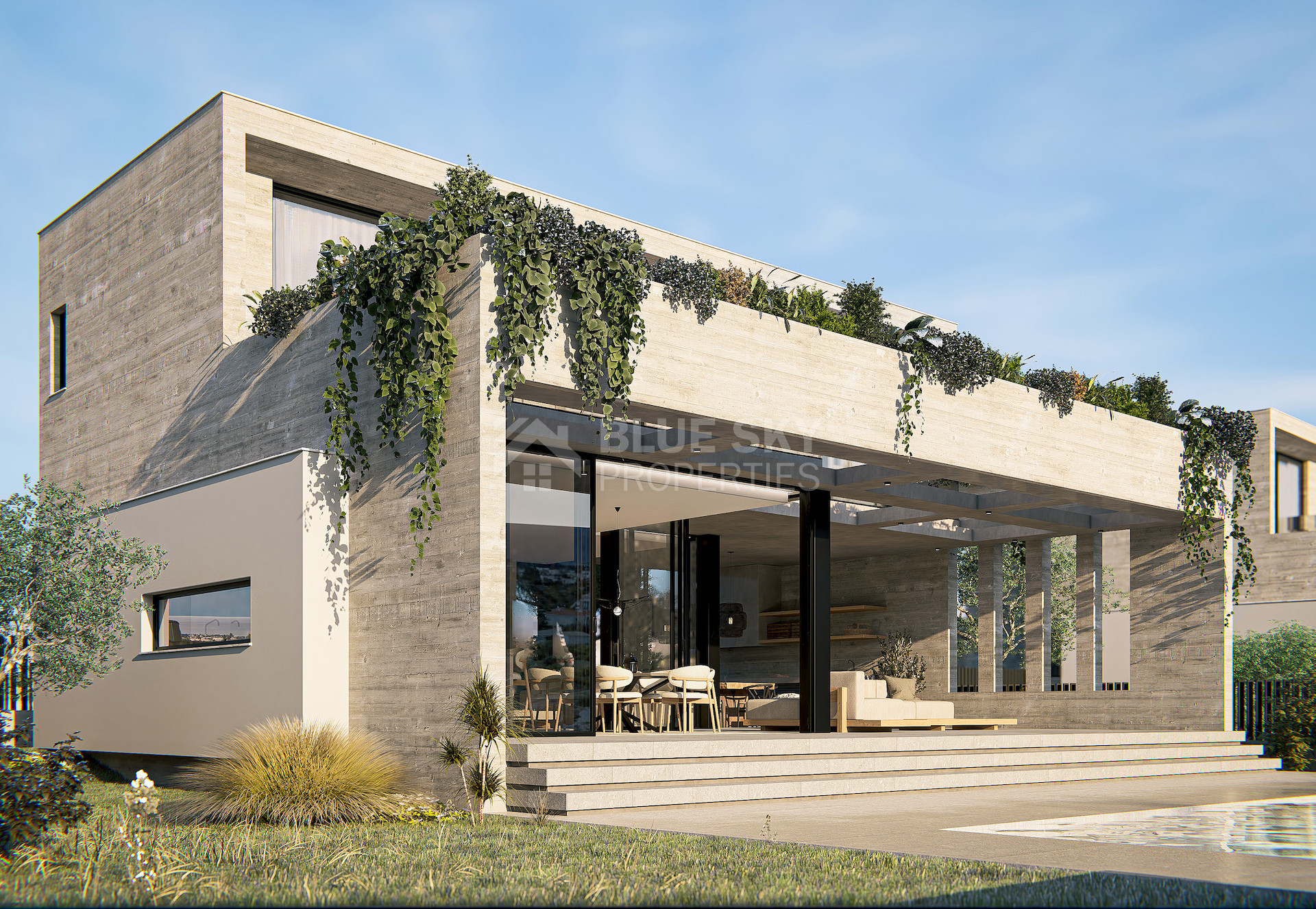 The villa is situated in the prestigious elevated area of Peyia, offering panoramic sea views over Coral Bay and Peyia village in the Paphos region of Cyprus.