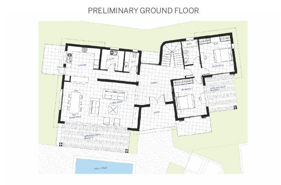The villa consists of three levels: lower ground floor, ground floor, and first floor.