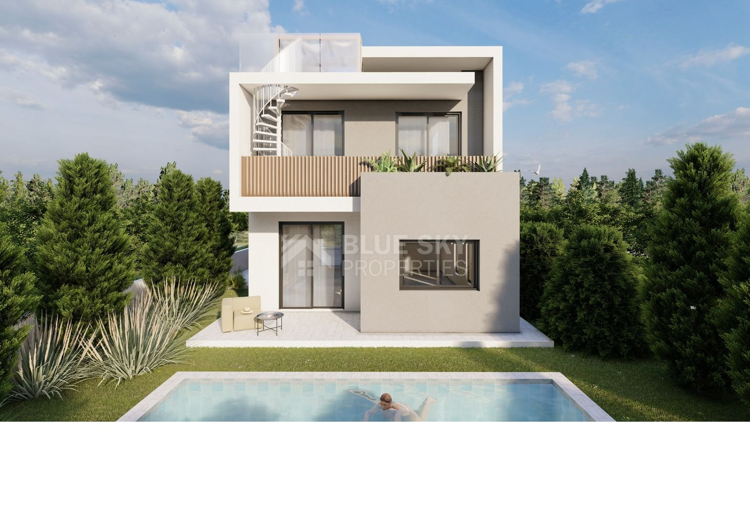 For sale: An impressive off-plan detached villa offering modern living with energy efficiency class A in the sought-after area of Tremithousa. With 145 m² of internal space, this home is thoughtfully designed across multiple levels for comfortable family living.