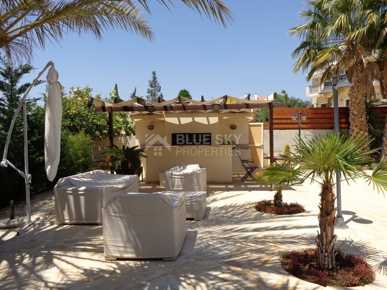 An amazing five bedroom detached villa located in the Kalogyros in Limassol with panoramic view is available now, This beautiful villa was built to the highest standards in 2008 with no expense spared and has been kept and maintained in excellent condition. It boast a very large heated swimming pool, five bedrooms (, one of them has en-suite) , guest wc, full A/C ,central heating ,.five bathrooms, pool room barbeque area, nice veranda and courtyard to enjoy your food and drink. It has one private garage for two cars and two uncovered parking spaces, a store room and one bedroom for the maid. This villa has quick access to all needed amenities including supermarkets, parks and nice restaurants.