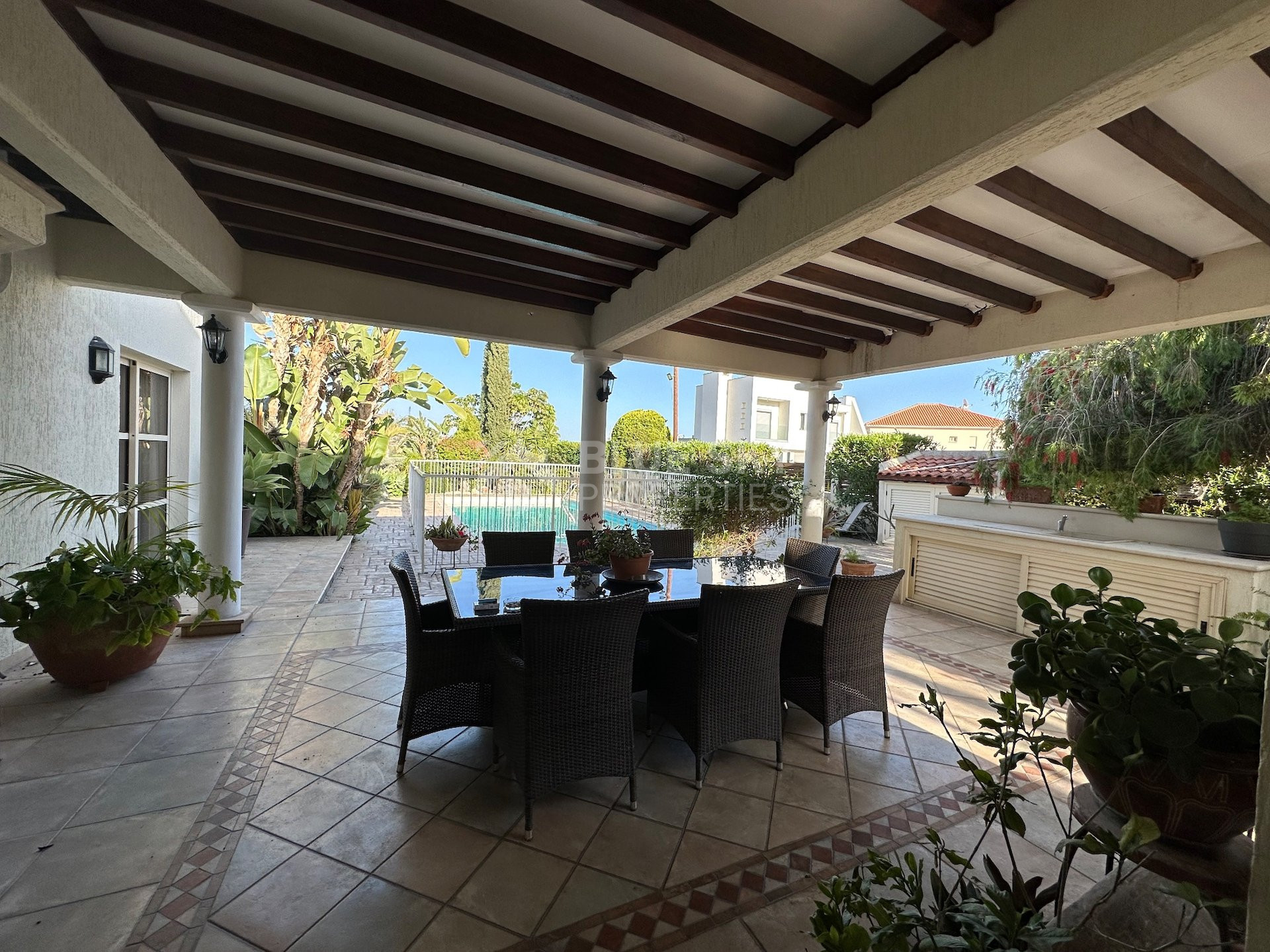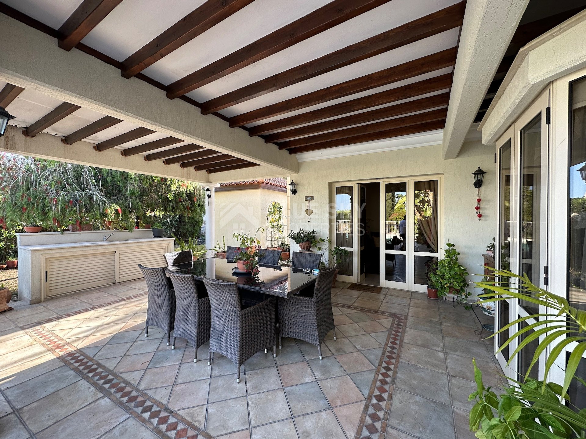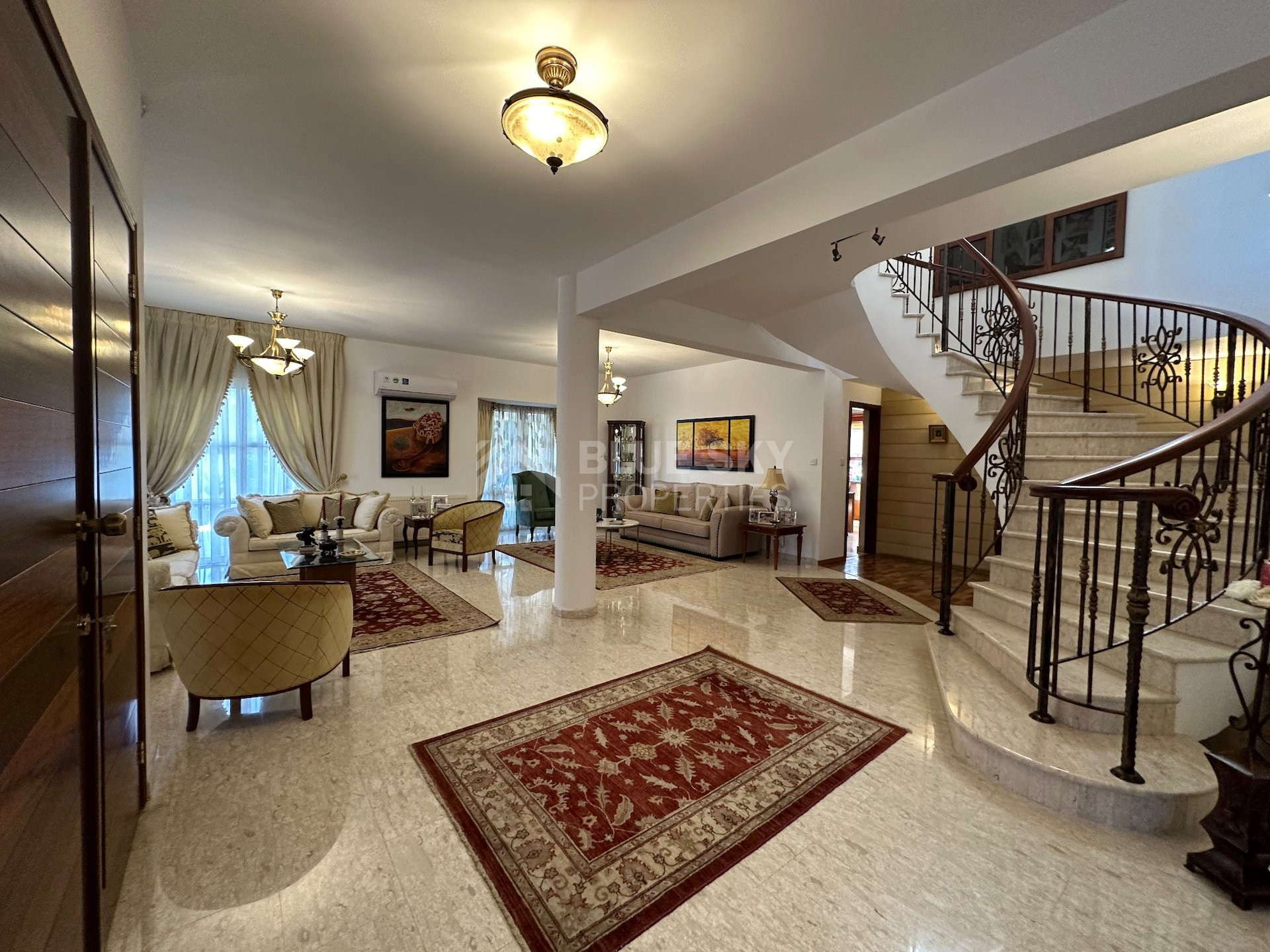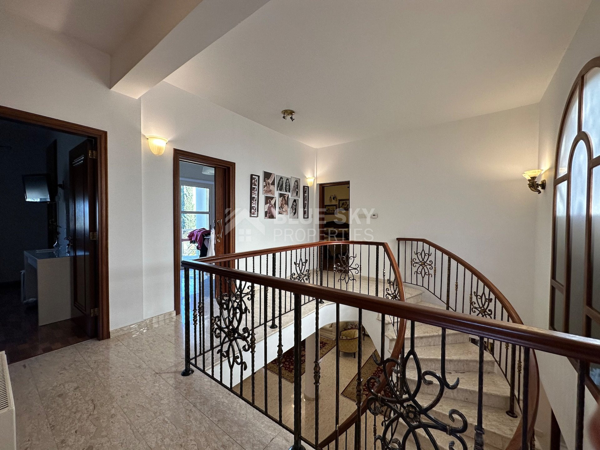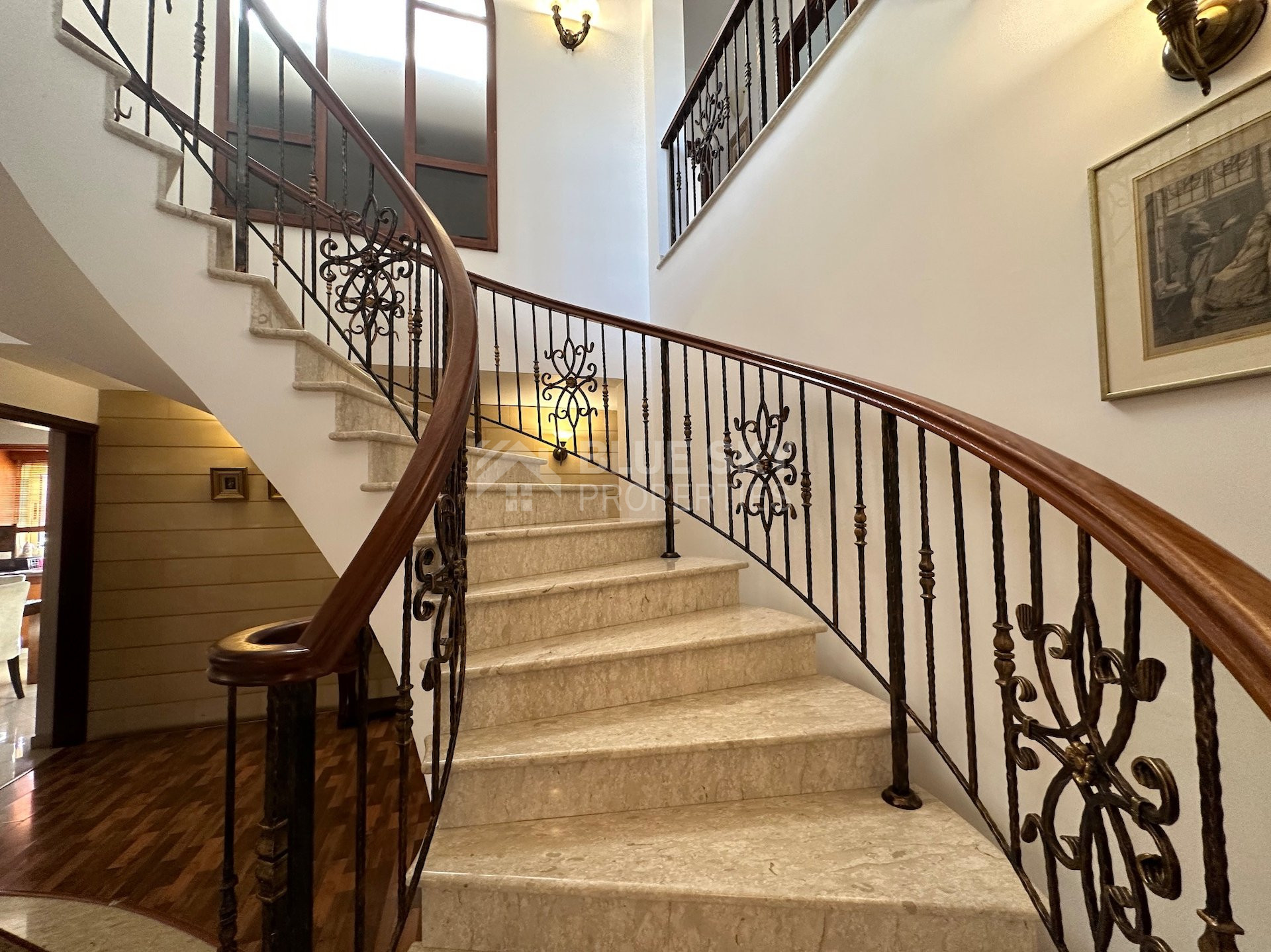 Indulge in the epitome of luxury with this 5-bedroom villa featuring gated entry, expansive gardens, and a poolside retreat. Enjoy four bedrooms upstairs, a ground-level office, and a stylish kitchen with a TV area. Outside, entertain in style with a swimming pool, BBQ, and pergolas. Experience refined living with central heating, air conditioning, fireplace and elegant features throughout.