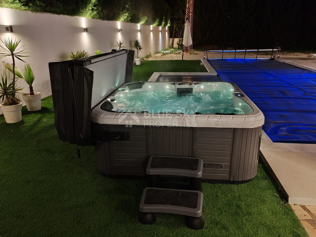 Its combination of luxury features (heated pool, jacuzzi), large plot, family-friendly design, and exceptional energy efficiency.