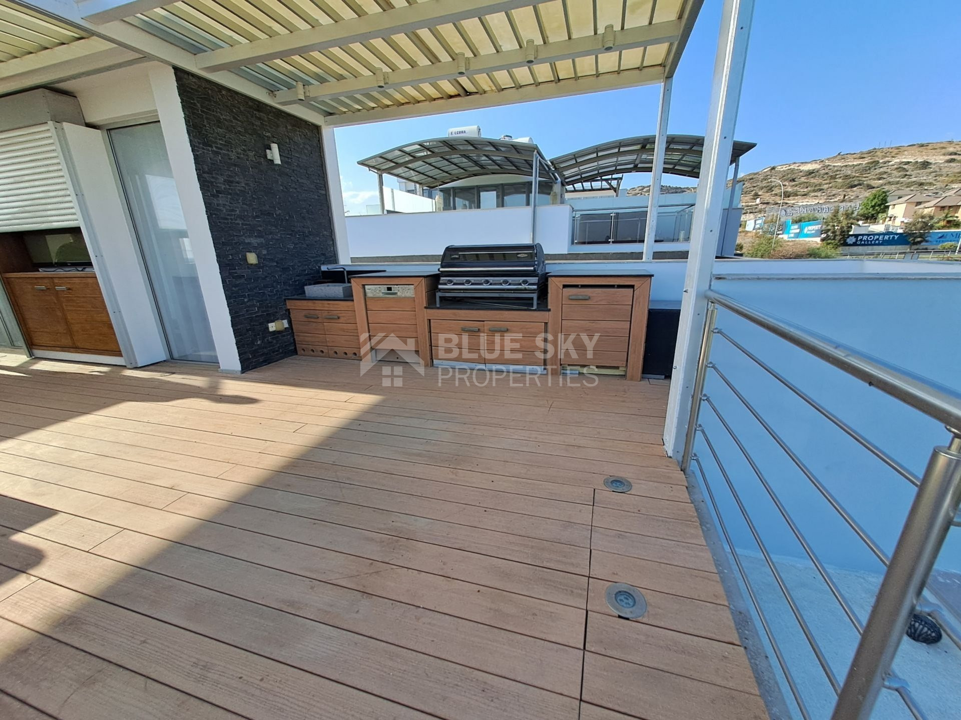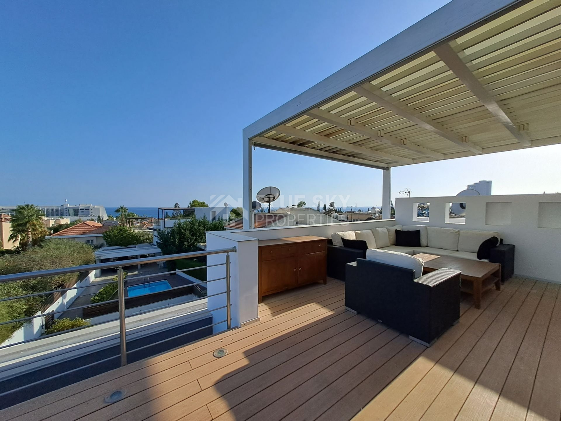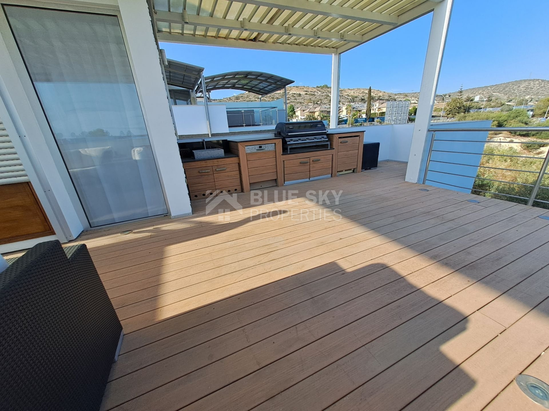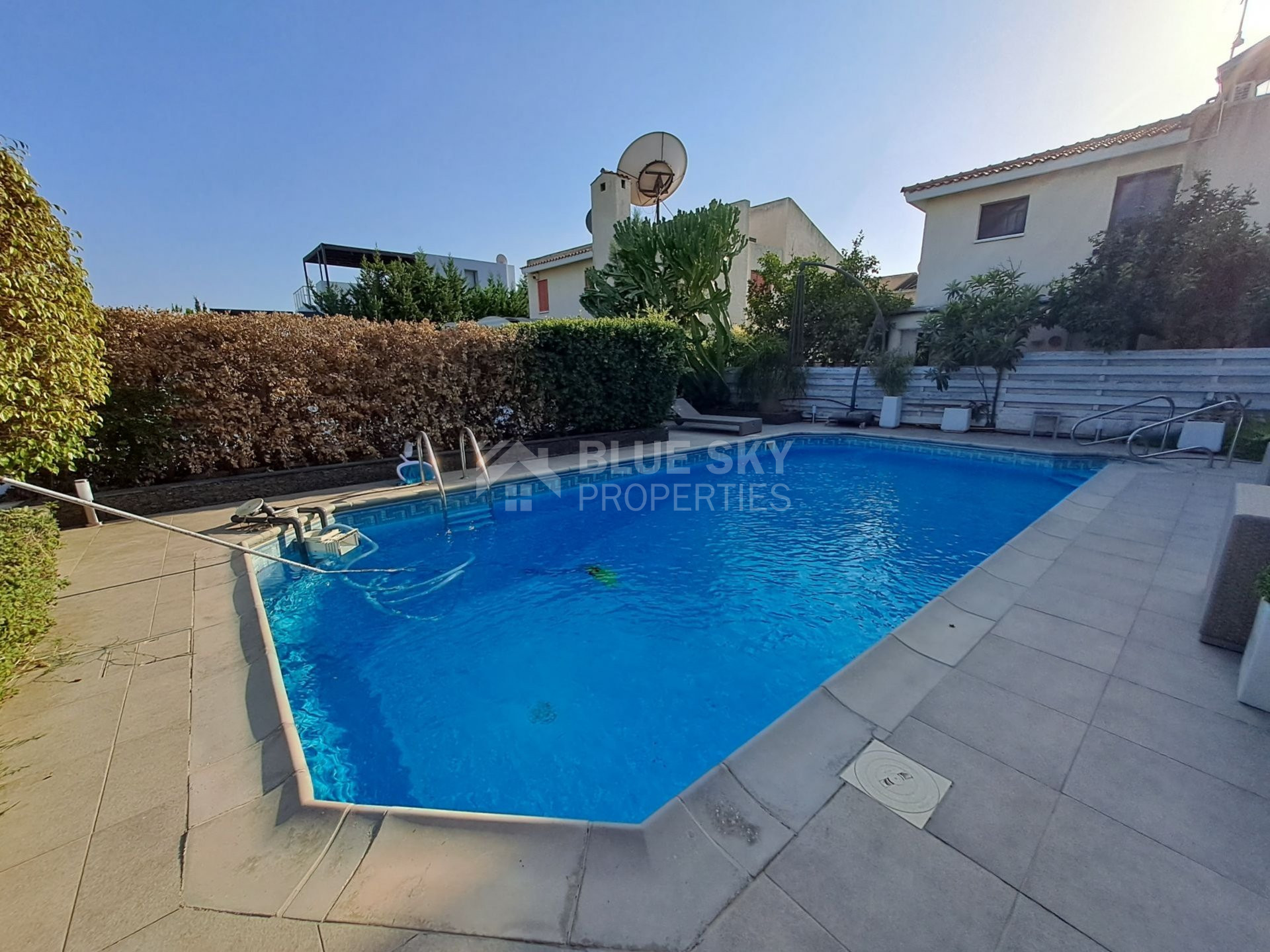 An exceptional four bedroom property located on the seafront of Limassol. This charming residence boasts beautiful sea views from the Roof Garden, a private swimming pool and mature garden. The house has a lovely inside open plan area with guest WC and access to the outdoor terrace with pool. The first level has three spacious bedrooms, the master has en-suite shower and a family bathroom is shared by the second and third bedrooms. The basement area has a cinema room, fourth bedroom with en-suite shower and sauna. A fabulous roof garden enjoys a beautiful outdoor seating area with barbecue and amazing views. Easy access to the seafront road, the highway and just a few metres to the Sea. A truly marvellous seafront property which has to be seen to be fully appreciated. Please call for further information and a viewing.