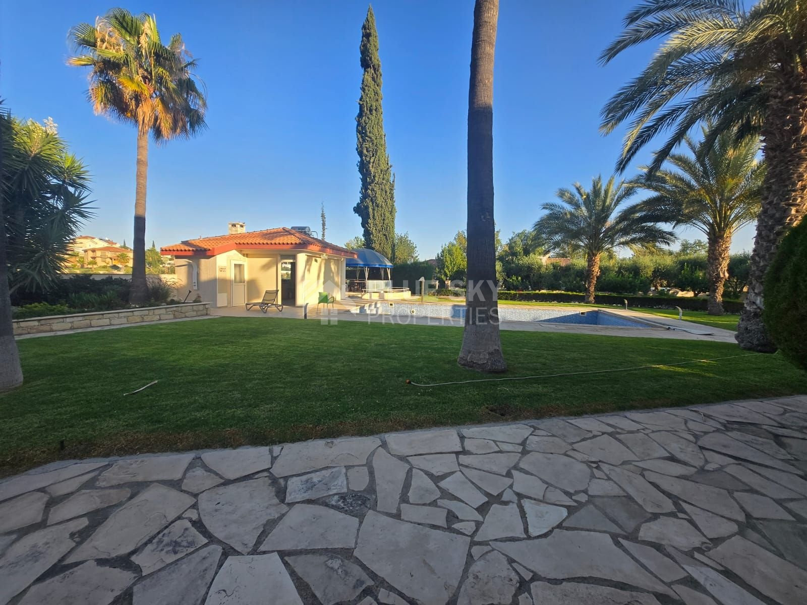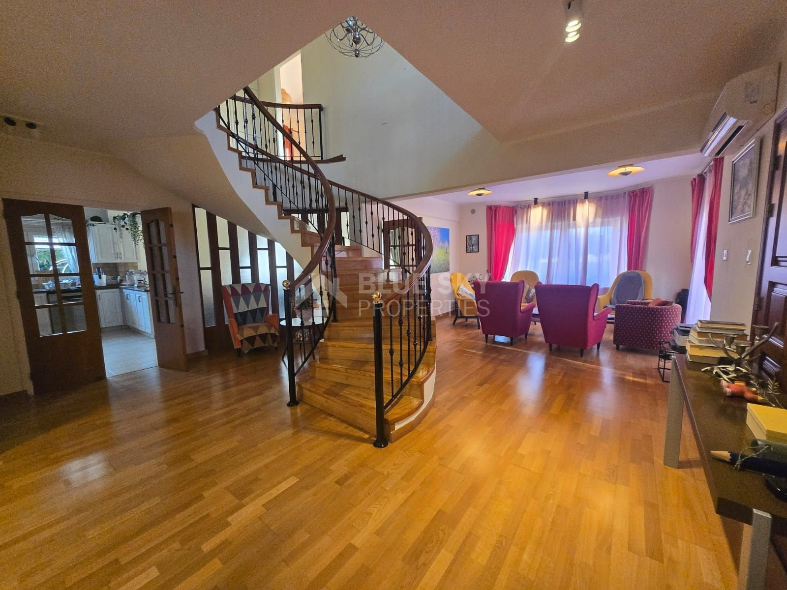 Set on a vast plot with a long, elegant driveway leading through beautifully mature gardens, this property provides both privacy and grandeur. Inside, the villa boasts a well-thought-out, spacious layout, including a formal sitting area, an elegant dining room that flows seamlessly into a family room, and an open-plan kitchen ideal for modern living.
