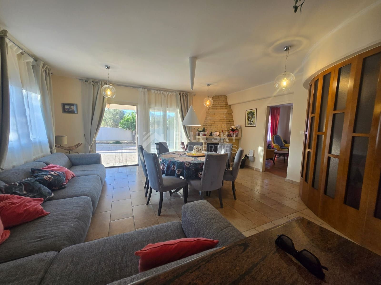 Nestled on a serene country road in Pyrgos, this extraordinary five-bedroom villa offers the perfect blend of countryside charm and coastal convenience—just 10 minutes from the seafront.