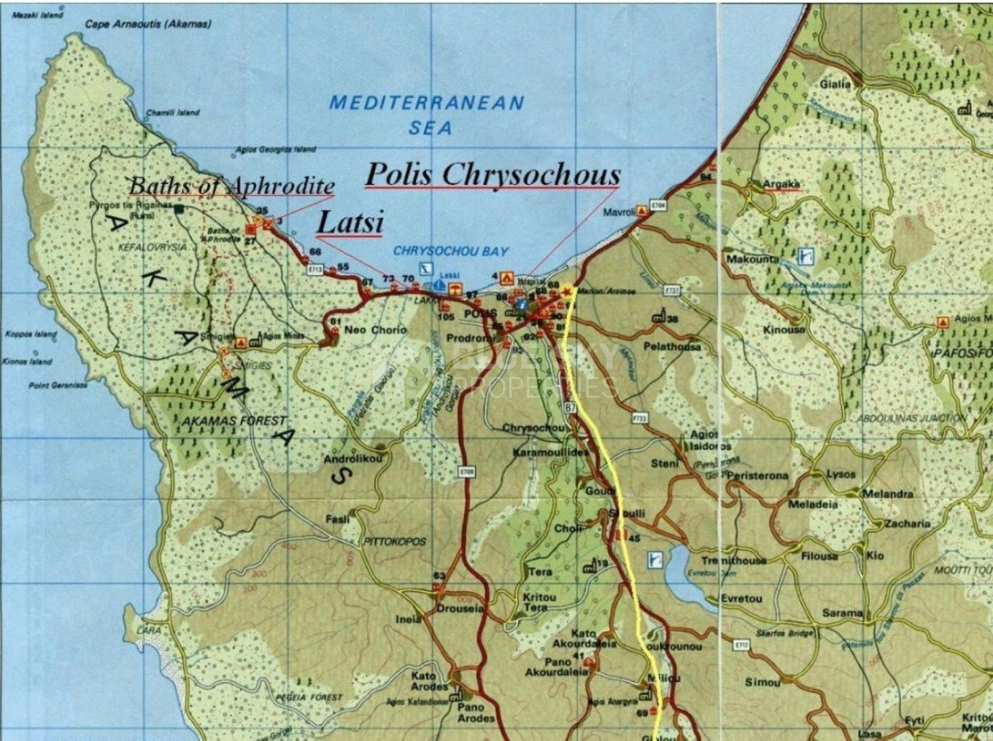 Residential land of 2342sq.m. for sale in Drousia. It falls within Ka8d zone, with 60% building density, 35% coverage ratio and with allowance of 2 floor.