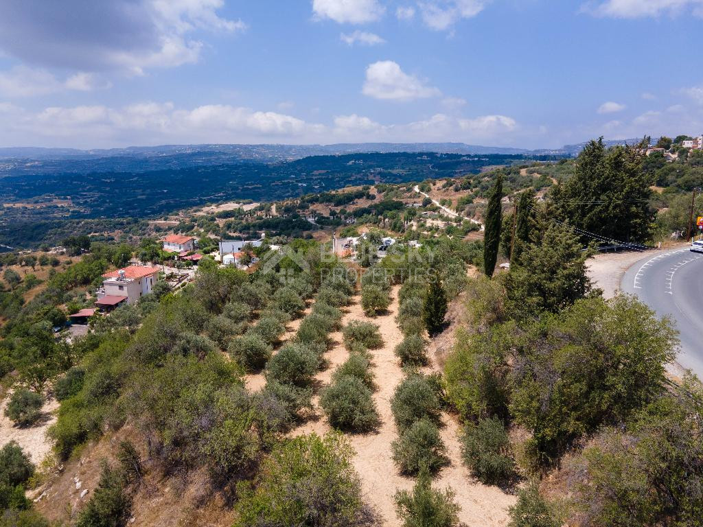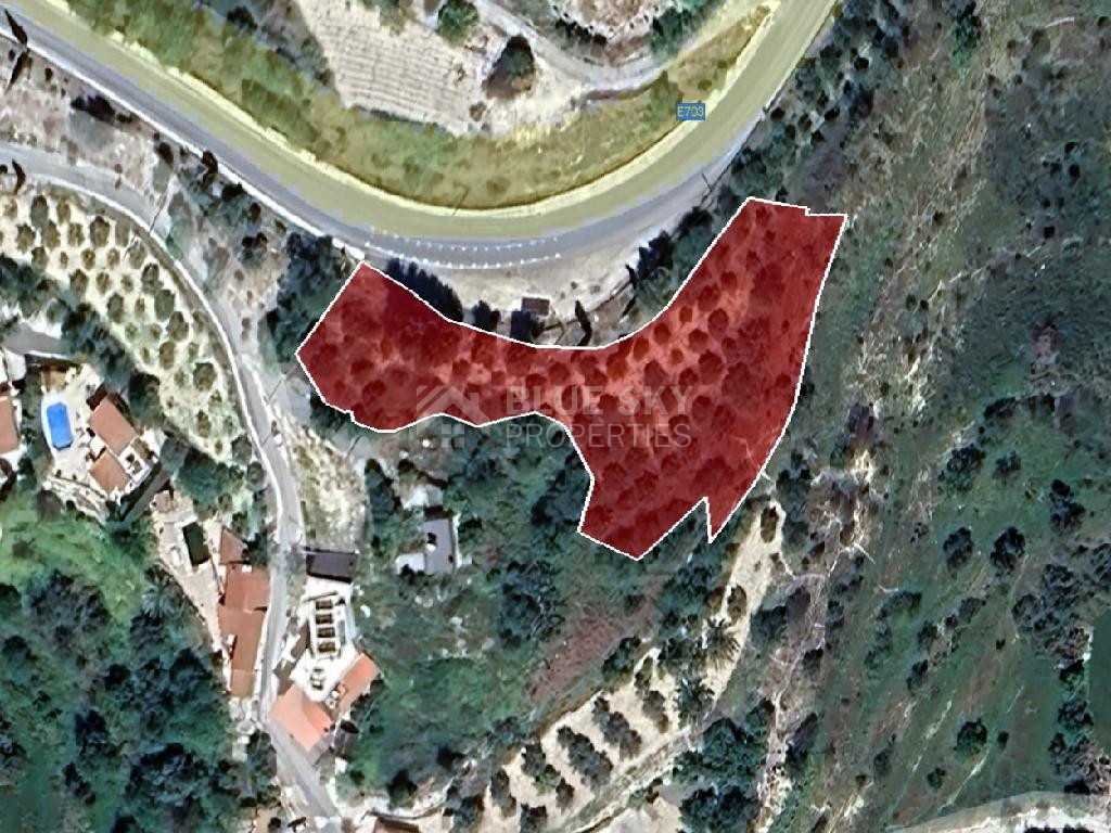 A residential field in the village of Psathi, Paphos District. The property has an irregular shape with an inclined surface and enjoys road frontage along three boundaries, though one of the roads does not currently exist on site. It lies within residential planning zones H2 (71%) and H1 (29%), allowing the development of two-storey and three-storey buildings with building factors of 90% and 120% respectively. The property is suitable for either plot division or residential development.