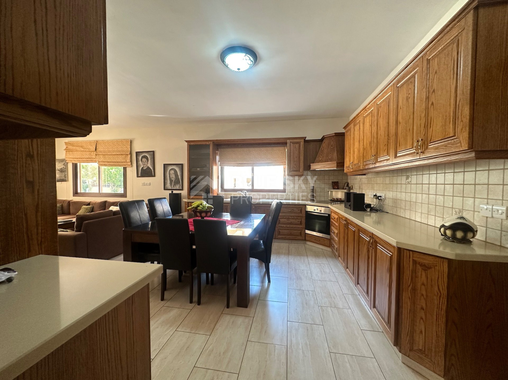 Located in a quiet residential area of Agios Athanasios, this spacious 323m² home sits on an 806m² plot, offering easy access to schools and all amenities. The property features large private gardens, a covered pergola with built-in BBQ, and an external maid’s quarters.