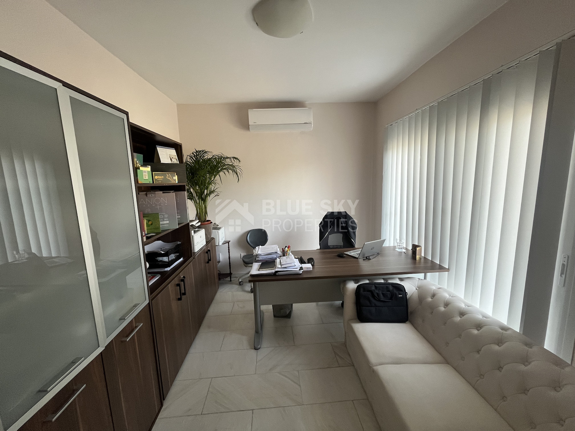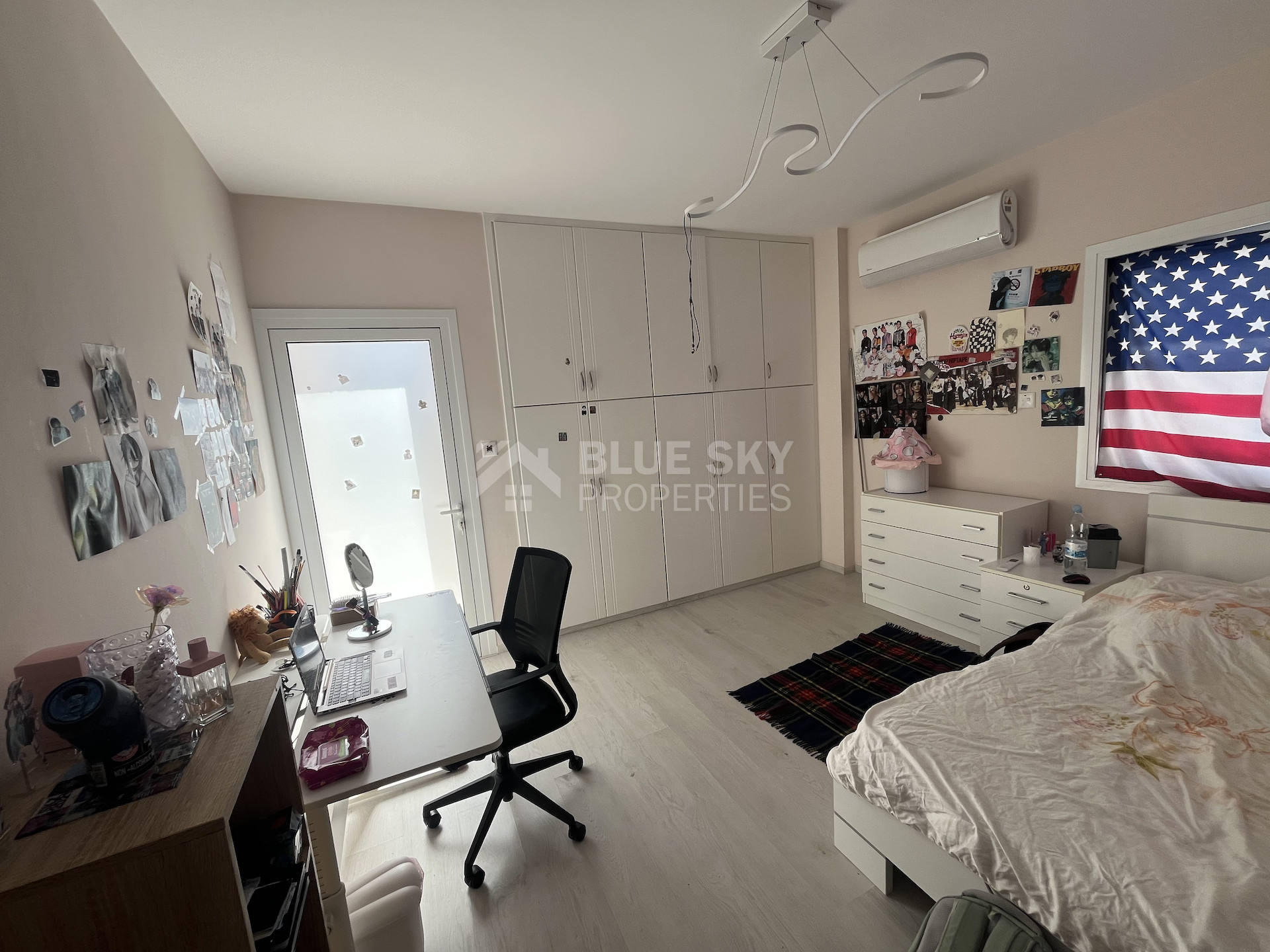 For sale is a spacious resale house in the desirable area of central Agios Athanasios. This fully furnished home covers 265 m2 of internal space and 100 m2 of roof garden and basement. It offers comfortable living for families or those who value extra room. The house features four large bedrooms, two modern bathrooms, guest toilet providing ample space and privacy.