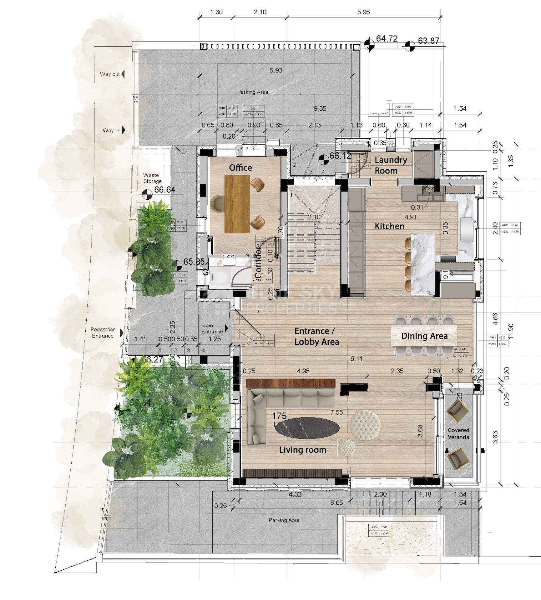 Introducing a stunning new house under construction in the desirable area of Agios Tychon. This impressive property features a generous internal space of 307 square meters, designed with modern living in mind. With four spacious bedrooms and six well-appointed bathrooms, it promises comfort and convenience for families of all sizes.