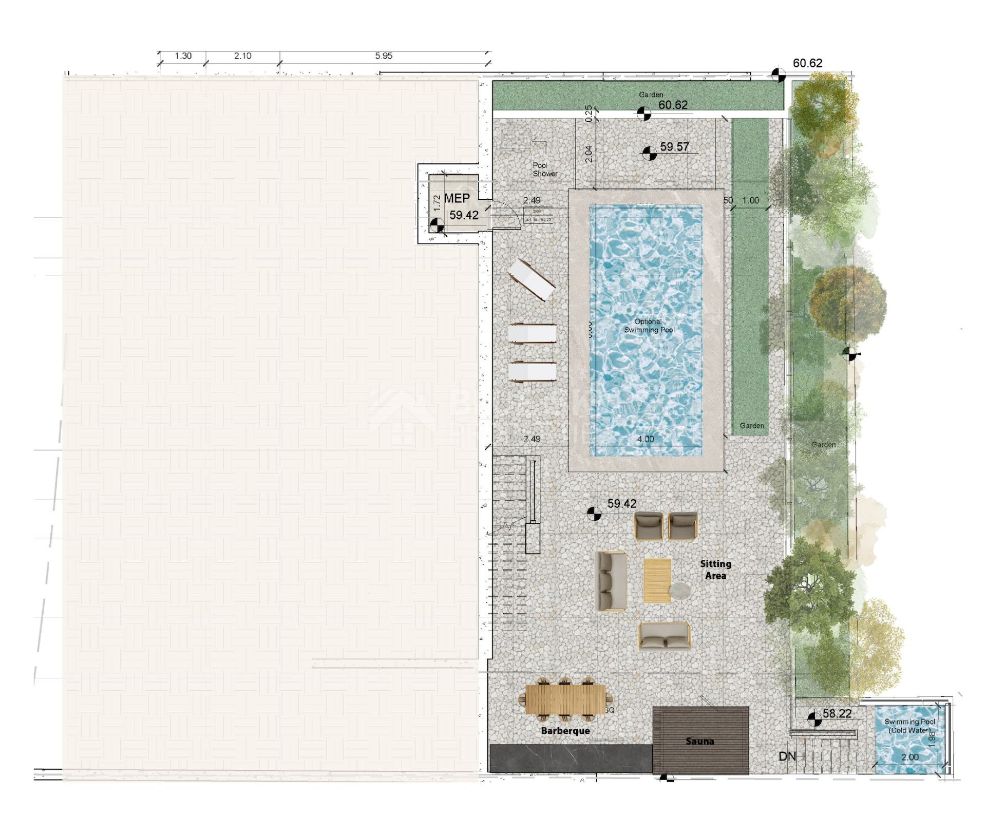 Set on a large plot, this home offers a private swimming pool, perfect for enjoying the sunny days and the beautiful scenery. The design incorporates large windows, ensuring ample natural light and breathtaking sea views from many areas of the house. As an added benefit, the home boasts an energy efficiency rating of A, promoting both sustainability and cost-effectiveness.