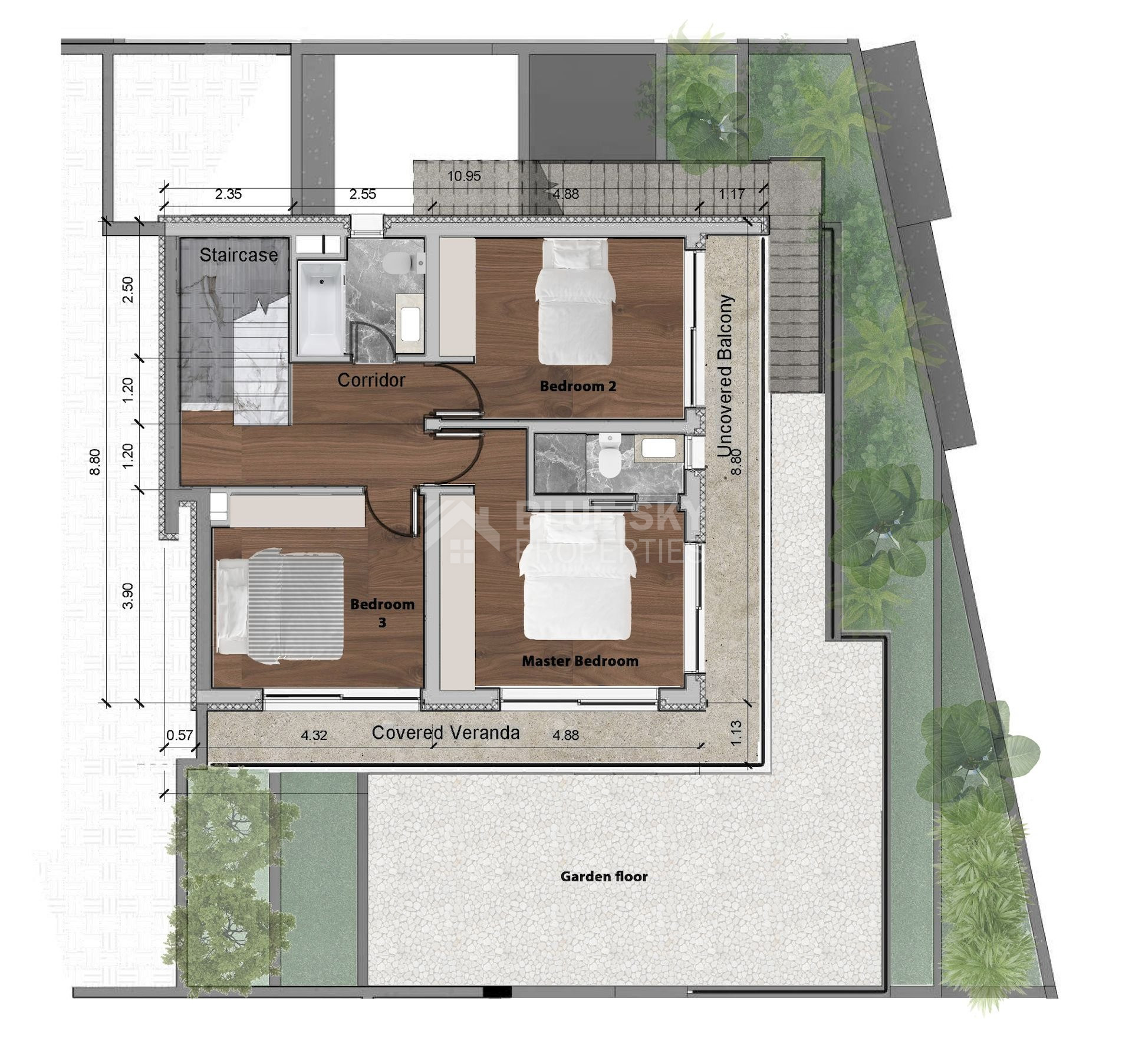 The property features a private swimming pool, perfect for relaxation and entertainment. As an added bonus, it boasts an energy efficiency rating of A, ensuring lower energy costs and a smaller environmental footprint. The home is offered unfurnished, allowing you to customize the interior to suit your personal style.