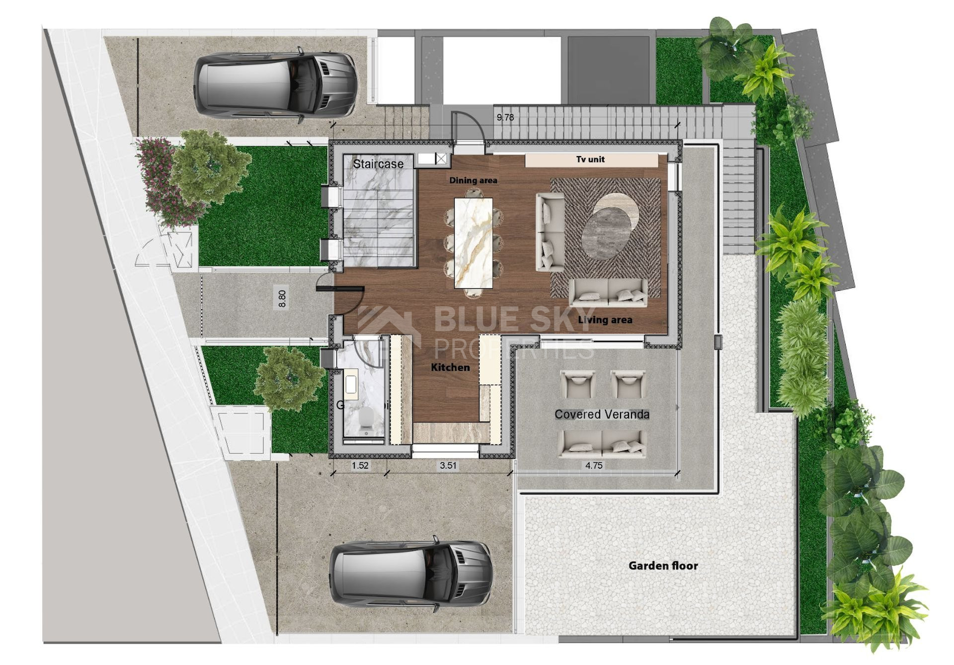 It takes less than two minutes from the beach and only 12-15 minutes drive from the City Center of Limassol, international schools and large shopping centers.