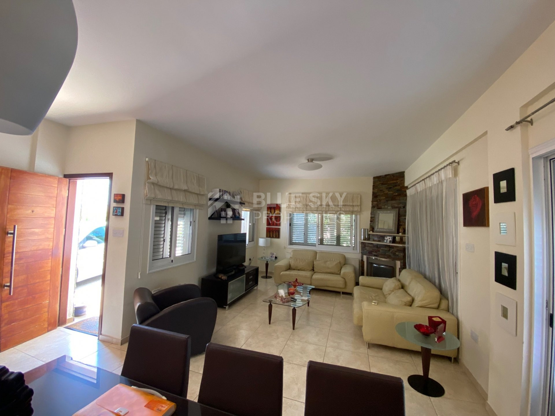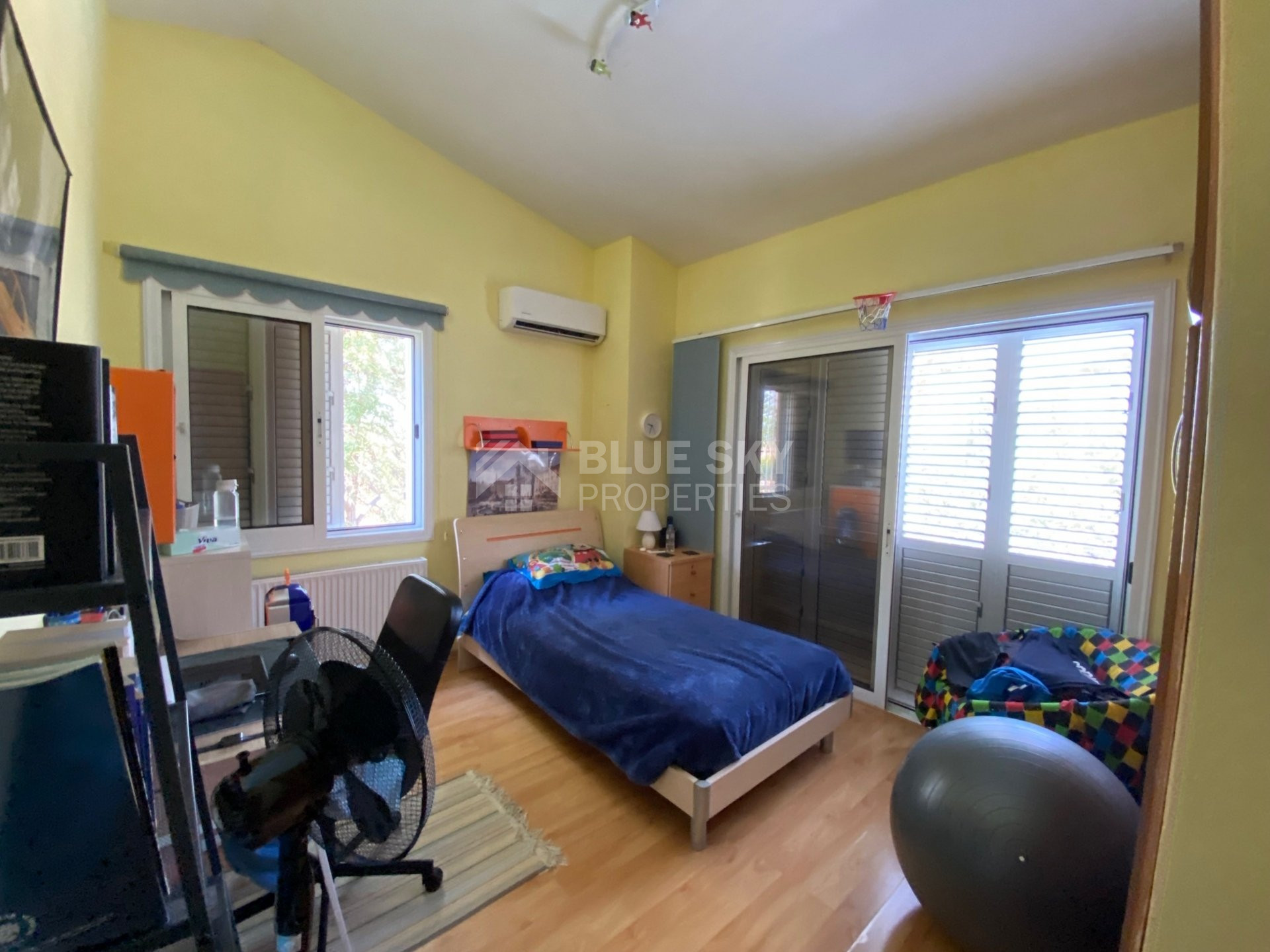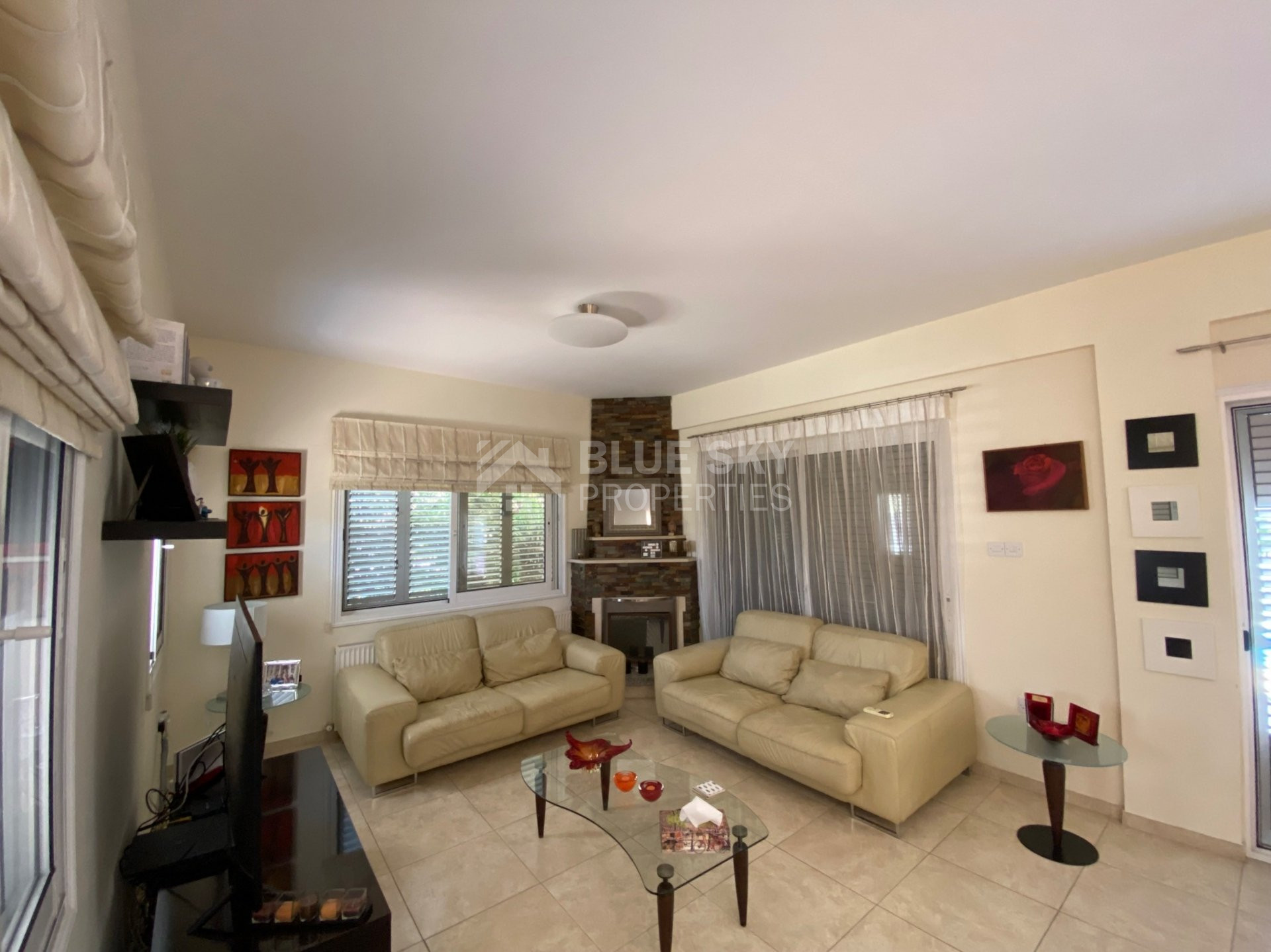•Alarm, Double glazed windows with extra safety lock and external hinged aluminium frames and mosquito net