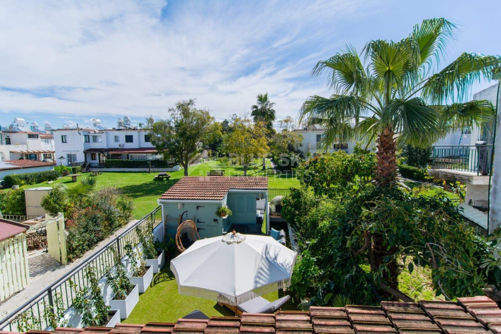 Το ακίνητο διαθέτει επίσης καλά διατηρημένο κήπο με τεχνητό γρασίδι, ιδανικό για εξωτερική χαλάρωση. Επιπλέον, προσφέρει αποθηκευτικό χώρο 15 τετραγωνικών μέτρων και πρόσβαση σε μια μεγάλη κοινόχρηστη πισίνα και πράσινο χώρο, ιδανικά για ξεκούραση μετά από μια κουραστική ημέρα. Βρίσκεται σε απόσταση περιπάτου από τοπικές ανέσεις, την παραλία και στάσεις λεωφορείων, καθιστώντας αυτή τη μεζονέτα εξαιρετική επιλογή για όσους επιθυμούν εύκολη πρόσβαση στην Πάφο, την Πόλη Χρυσοχούς και τα κοντινά αξιοθέατα. Το ακίνητο είναι εξοπλισμένο με κλιματισμό και μοντέρνα έπιπλα, καθιστώντας το έτοιμο για άμεση εγκατάσταση ή ενοικίαση.