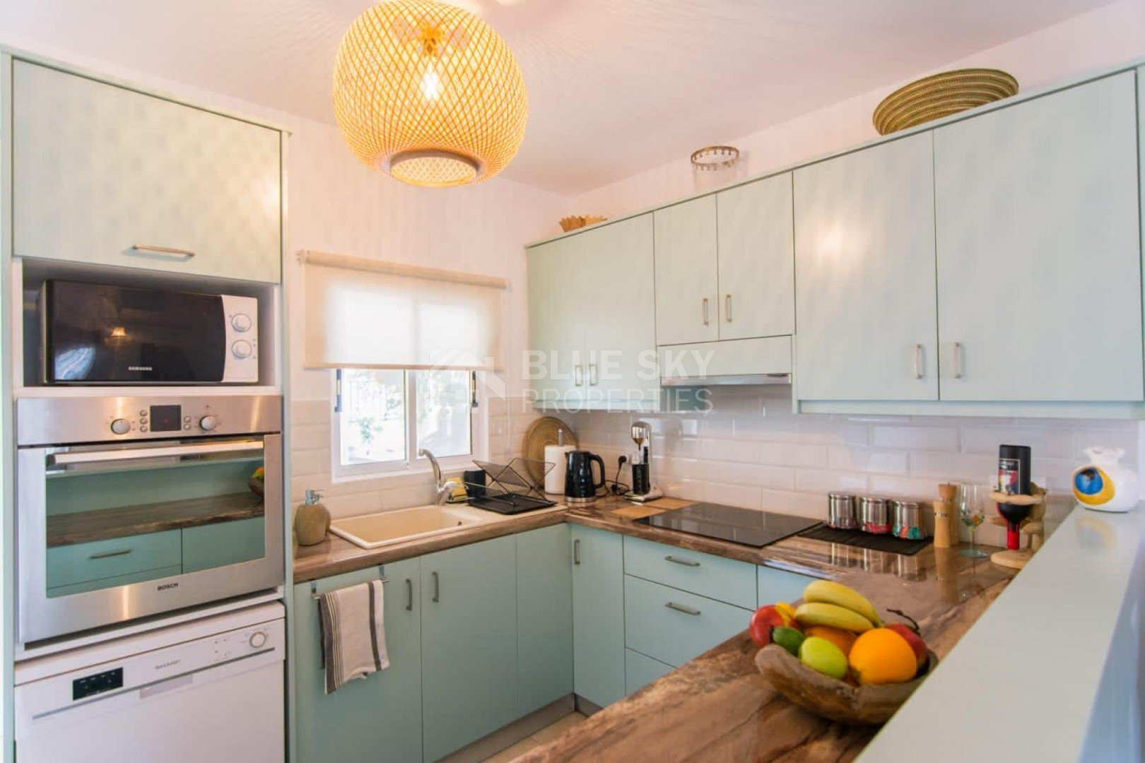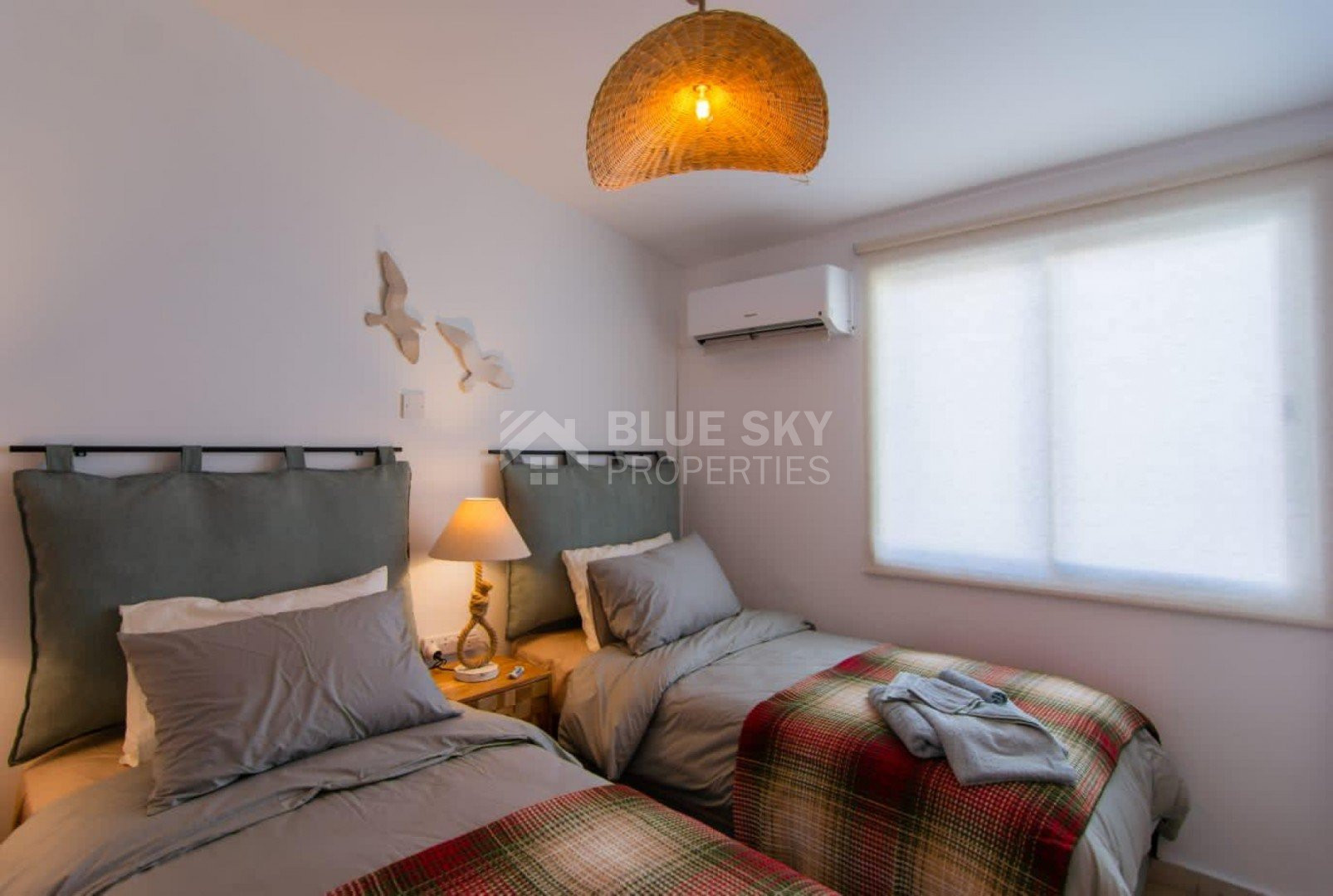 This charming two-bedroom maisonette in Latchi is perfect for buyers looking for a renovated home close to the beach. With a covered area of 80 square meters, this property offers spacious living areas and comes with full title deeds, ensuring secure ownership. The open-plan layout creates an inviting living space, while the fully-equipped kitchen provides convenience for everyday living. The two comfortable bedrooms and the luxurious walk-in shower in the modern bathroom add to the appeal of this maisonette.
