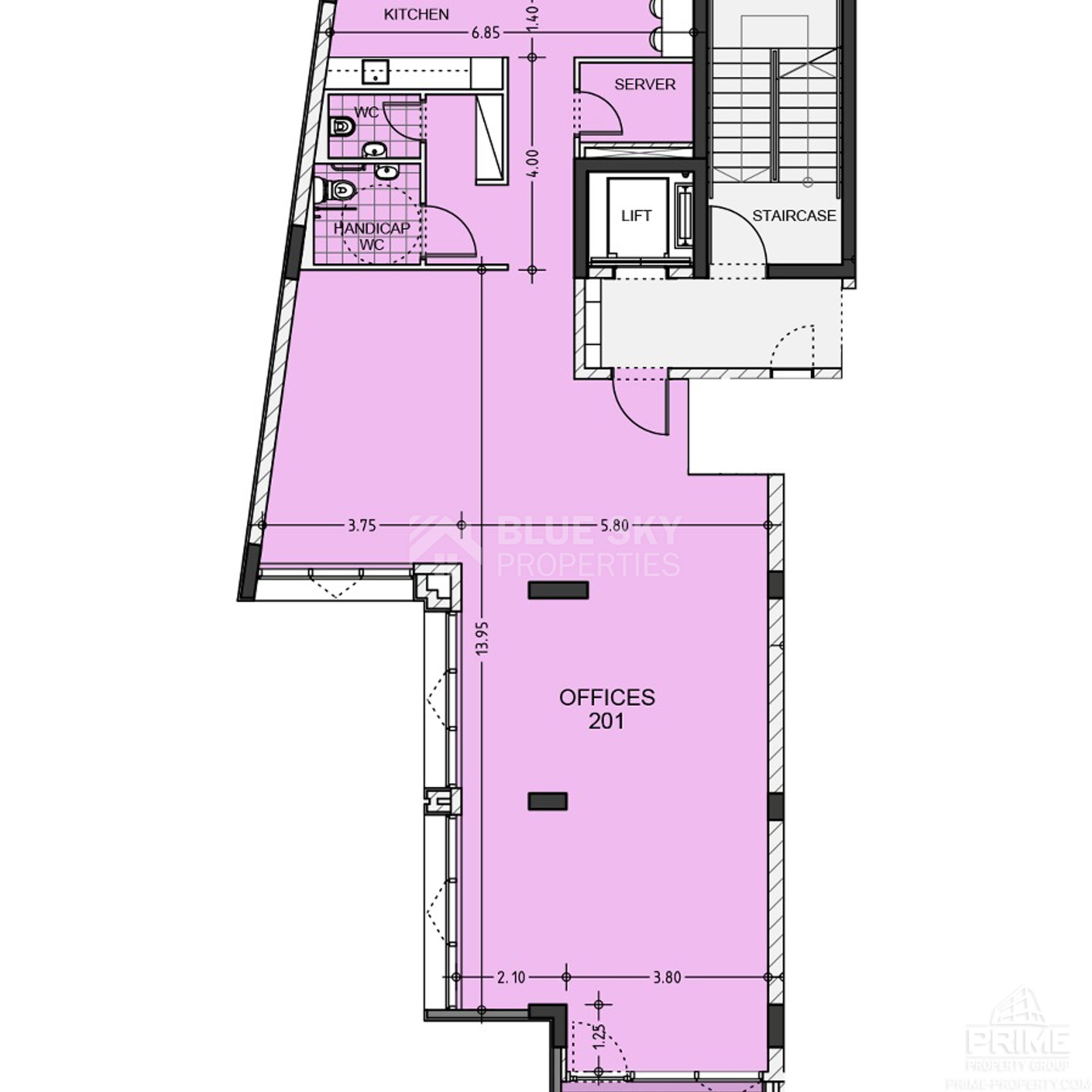 For sale: Off-plan office with a total internal space of 148.4 square meters, located on the second floor of a modern six-story building with elevator access. This office offers a flexible, open layout, ready to be customized to suit your business needs. Large windows fill the space with natural light and provide rewarding sea views.