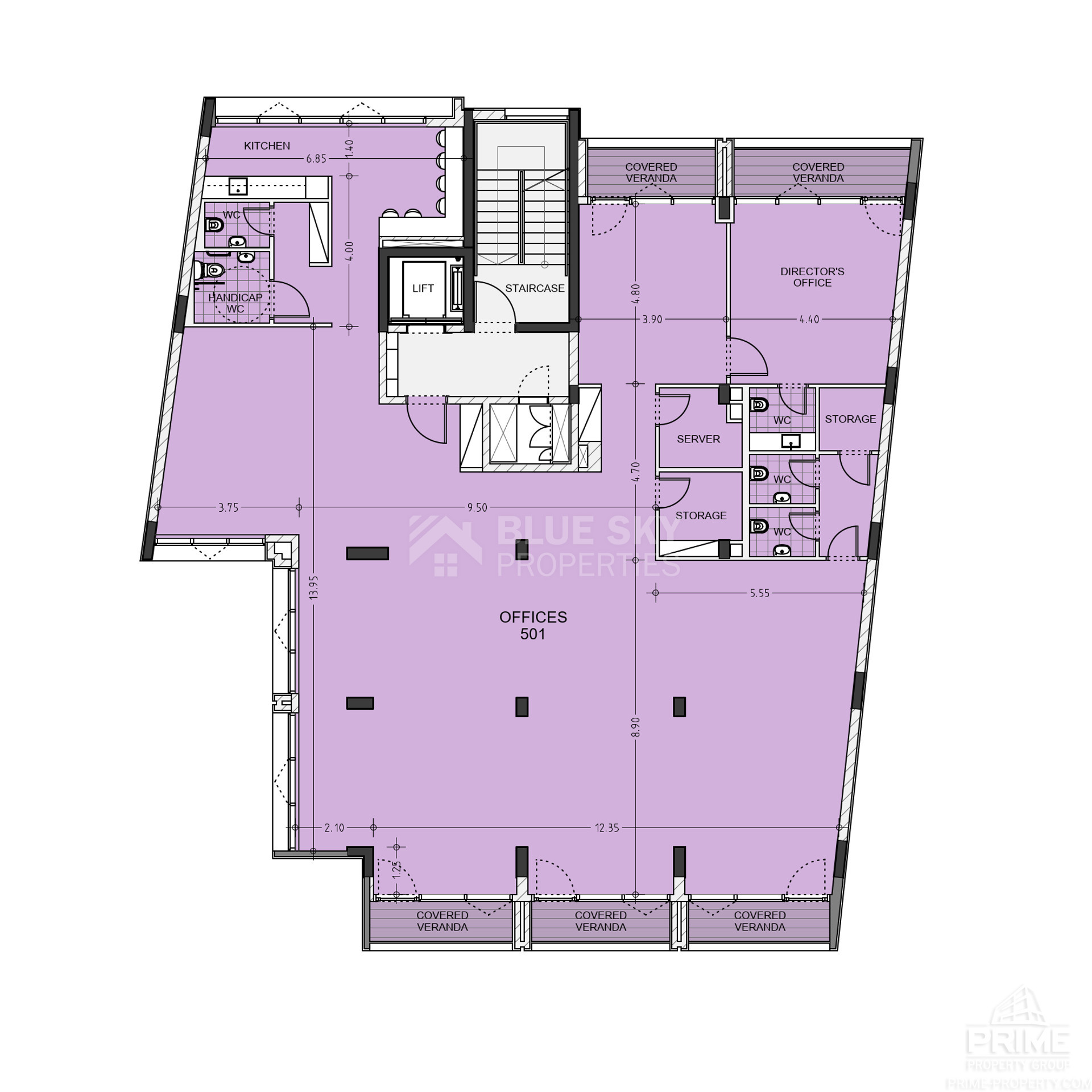 For sale is a unique office opportunity in Agia Zoni, available off plan. This modern office space offers a generous internal area of 337.1 square meters, situated on the 5th floor of a six-story building with convenient elevator access.