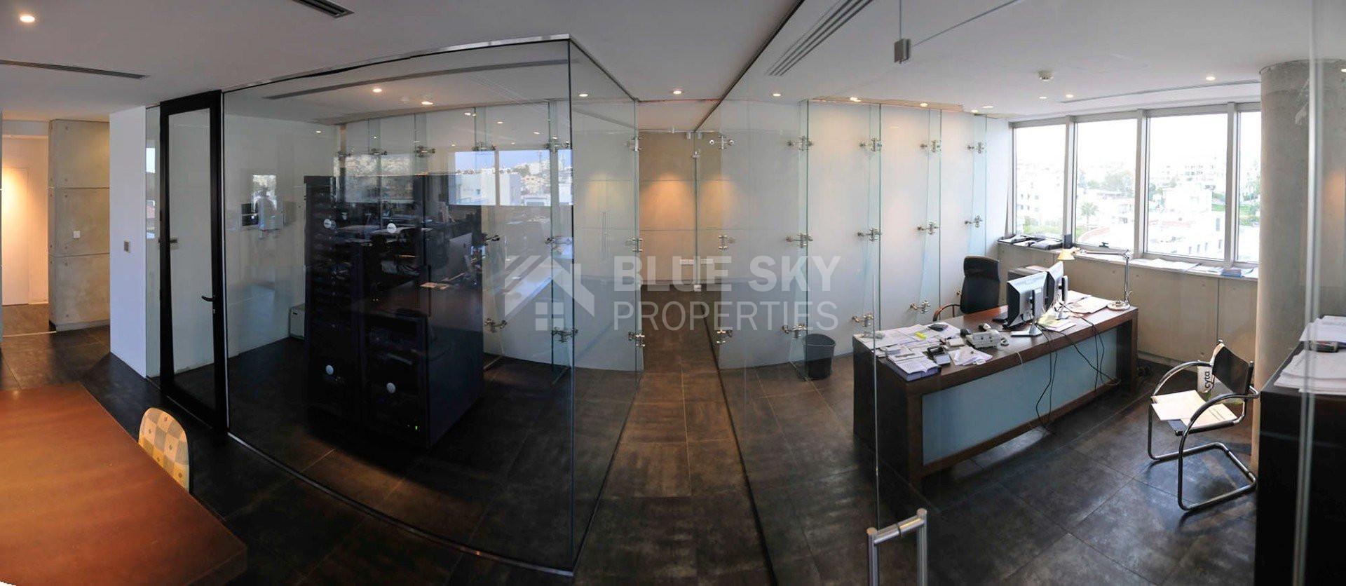A modern commercial building with architectural design, maximised frontage area for the absolute presence towards the main traffic artery on Spyrou Kyprianou.High quality internal wall cladding and partitioning made from top quality materials and designer details with fixtures and fittings making this the ideal working enviroment.Upgraded raised flooring, VRV a/c, two independent server rooms 24 BTU (DAIKIN). CAT 6 fitted with high speed networking. Lighting of high quality, Italian designer spot-lights and LED fittings. Energy efficient double glazed sound proof windows. Dedicated server rooms, upgraded electrical distributor box for up to (10Kva+) ready for intergration in server room. 3 PHASE electricity upgrade.Private covered outdoor balconies. Security with external monitoring system, video entry access, thermal and temperature sensors throughout.Top floor, city views, walking distance to all amenities, easy access to all arteries of Limassol and the highway.