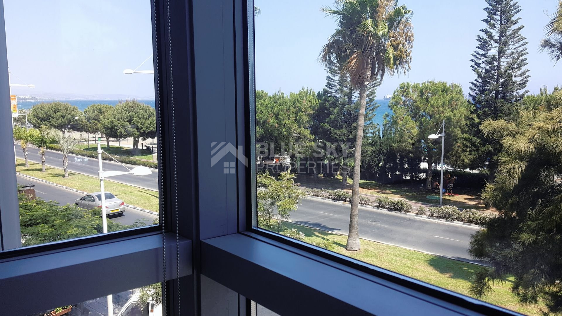 Luxury office space with direct sea view located in a modern business center opposite Molos park, near Limassol Marina and walking distance to amenities. The covered area 250 sq. m and it consists of the reception desk, sitting area, 7 separate offices, 4 WC, kitchen with dining area, server room with small storage and covered veranda for smoking. The office is fully furnished and equipped, with partitions, central air condition & fresh air system, structure cabling, alarm system, raised flooring and double glazed windows with blinds. Also there are 2 covered parking spaces and opposite the office, there is municipal parking.