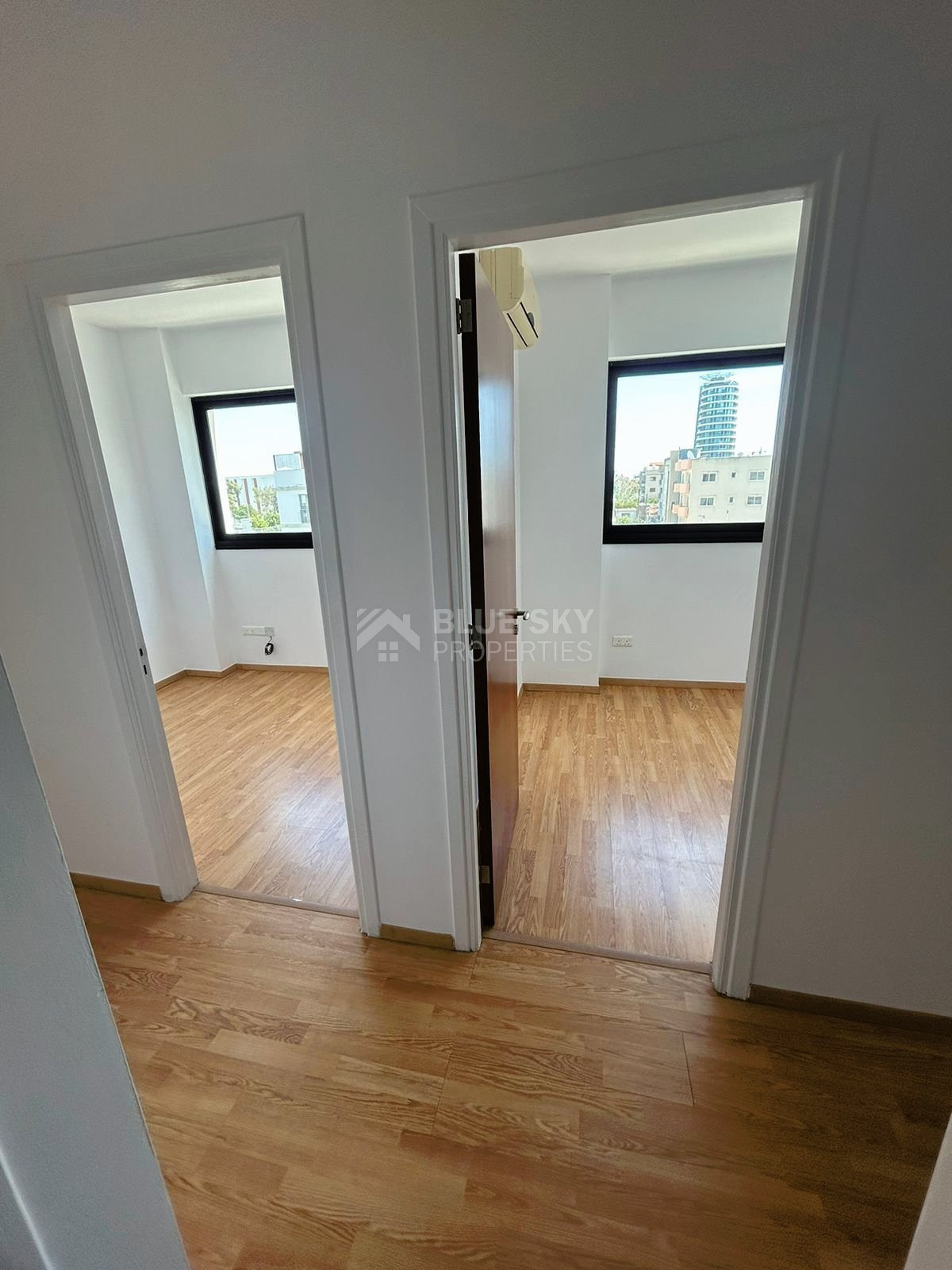 Discover this well-appointed 75sq.m. office space situated on the second floor of a prominent 6-storey business building located on Arch. Makarios III Avenue. Boasting three rooms, an entrance lobby, kitchenette, and toilet, this office provides ample space for various business operations. Enjoy the convenience of nearby amenities and public transport, making it easily accessible for employees and clients alike. The building offers gated parking, 24-hour security at the entrance, and CCTV surveillance for added peace of mind.