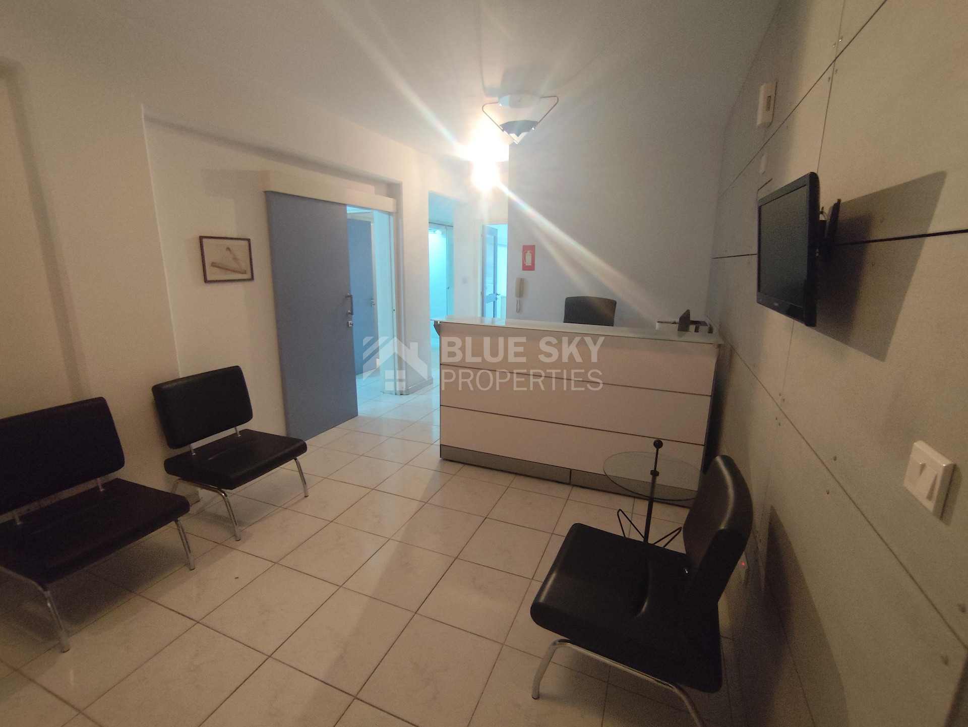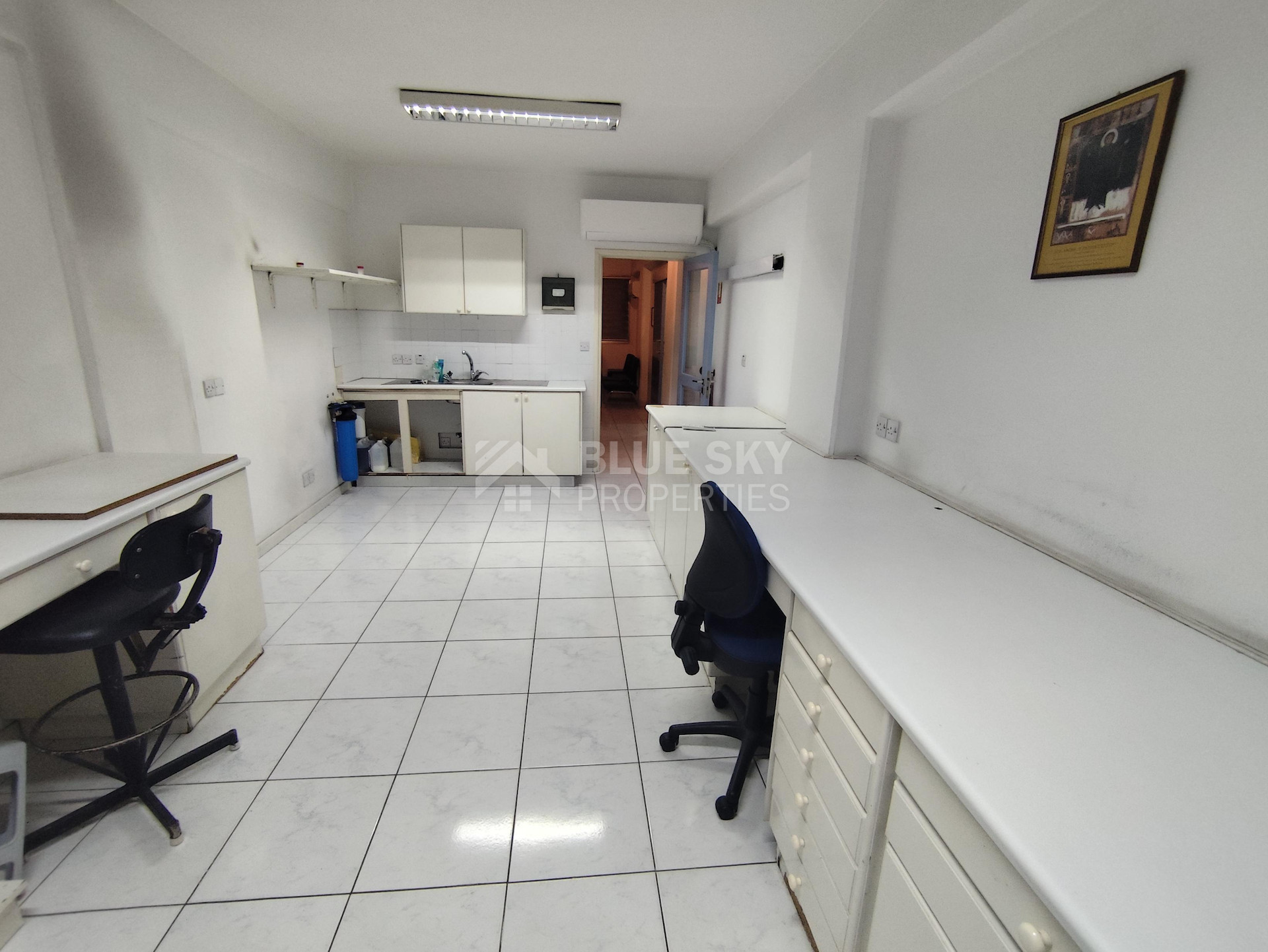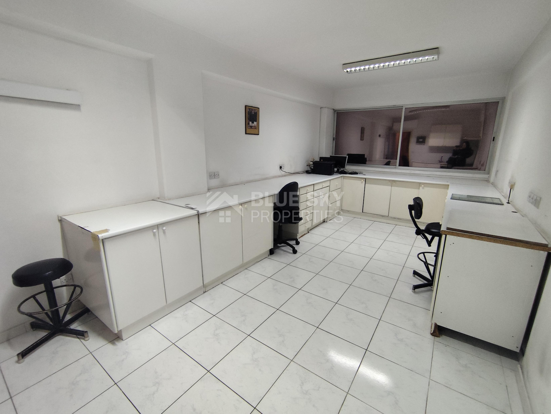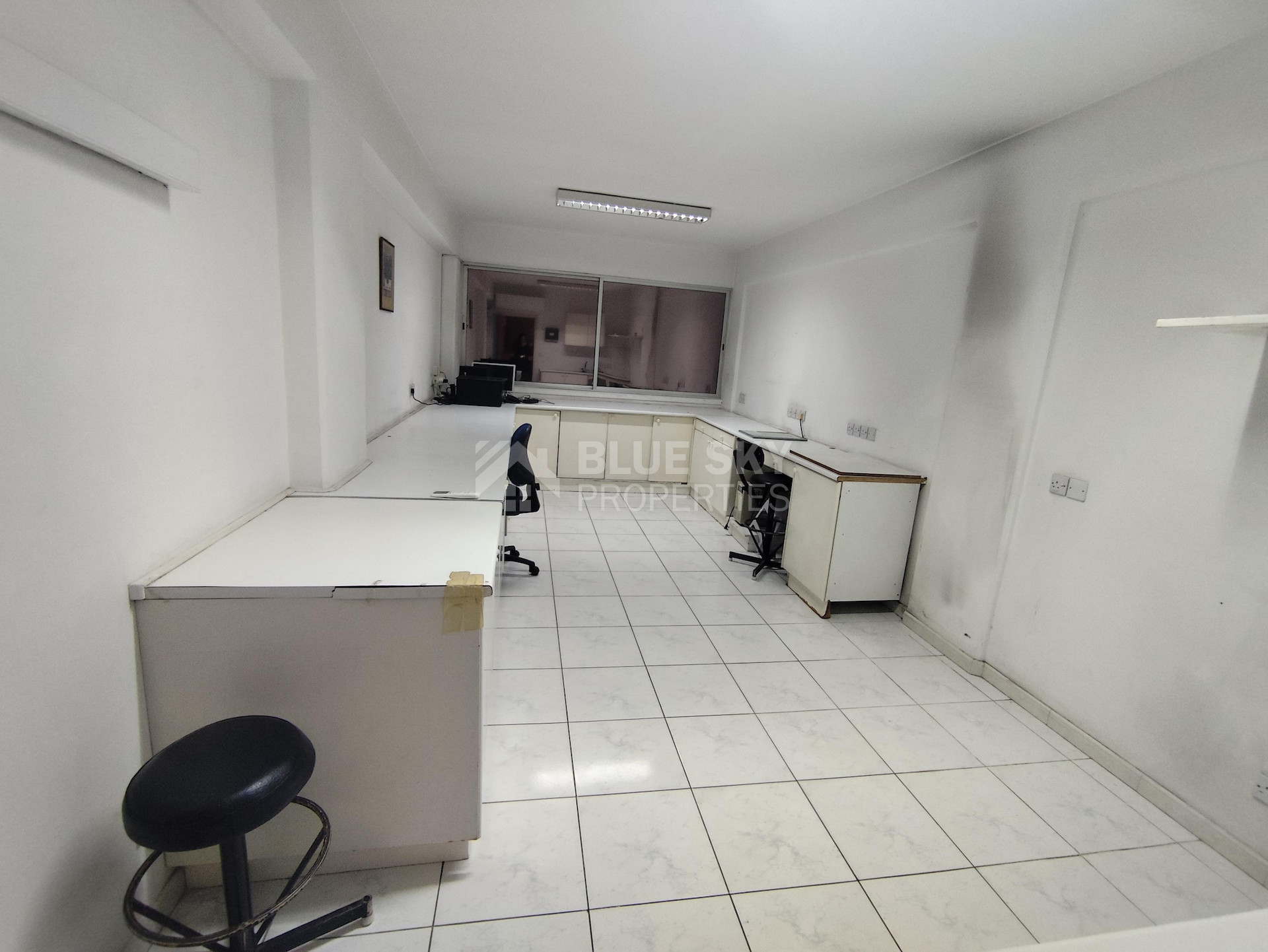 Nice office in Agia Zoni in Limassol with covered area 96 square meters is available now. .It has one covered parking space, two w.c. , one kitchenette and big windows facing the main road. The office is on the second floor as well. All Tenants should be from business sectors. The office is ideal for doctor, lawyer, architectural office, etc. It has easy access to main roads and all services and amenities. Please call for a viewing.