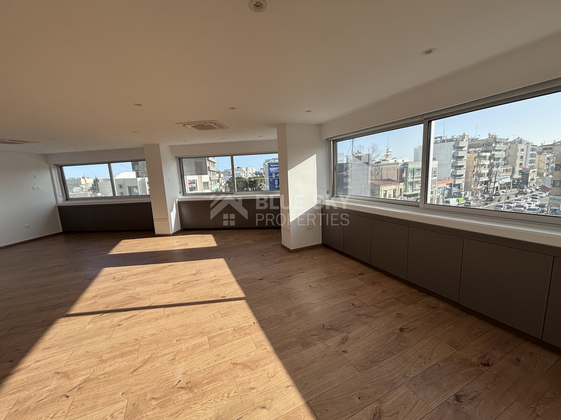 Available for rent, this well-maintained office offers 138 sqm of internal space on the third floor of a modern seven-story building with elevator access. The layout is practical and spacious, allowing flexibility for a range of business needs. Large windows ensure plenty of natural light throughout the workspace.