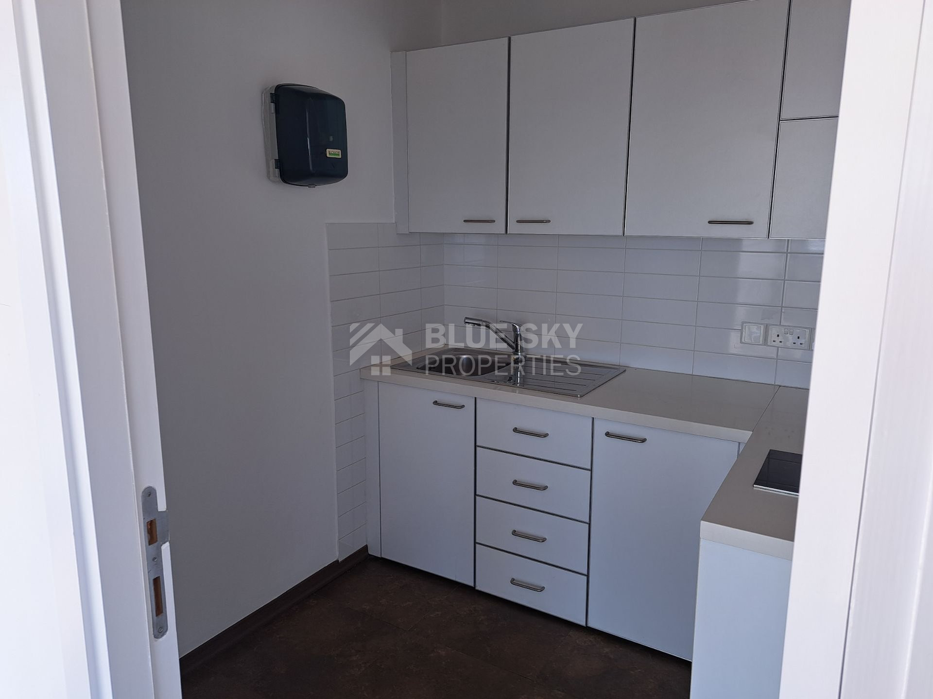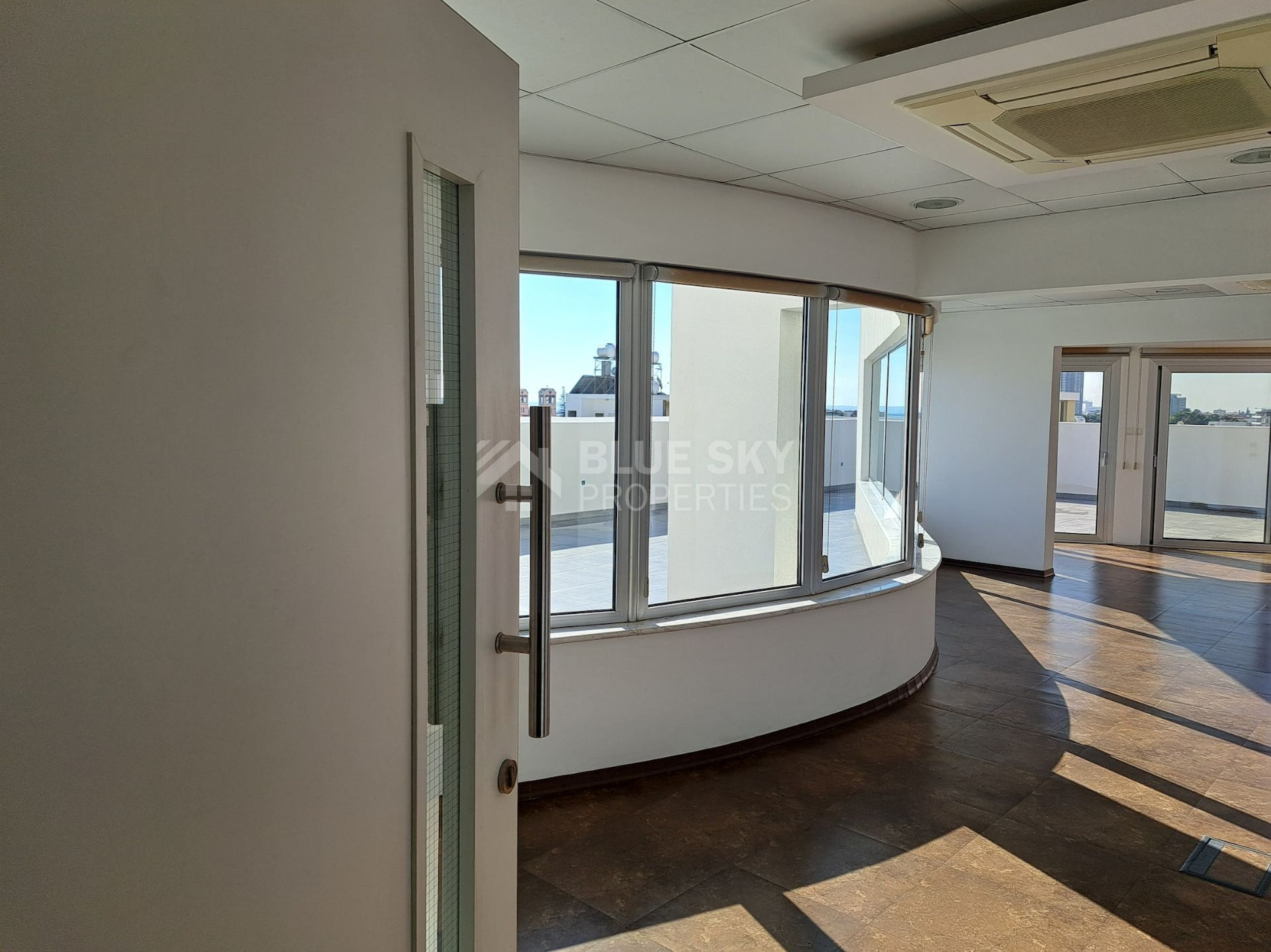 This spacious office space, available for rent, offers 792 m2 of internal area on the 2nd floor of a modern building in the desirable area of Katholiki. Built in 2015 and renovated in 2021, the space boasts contemporary design and energy efficiency rated A.