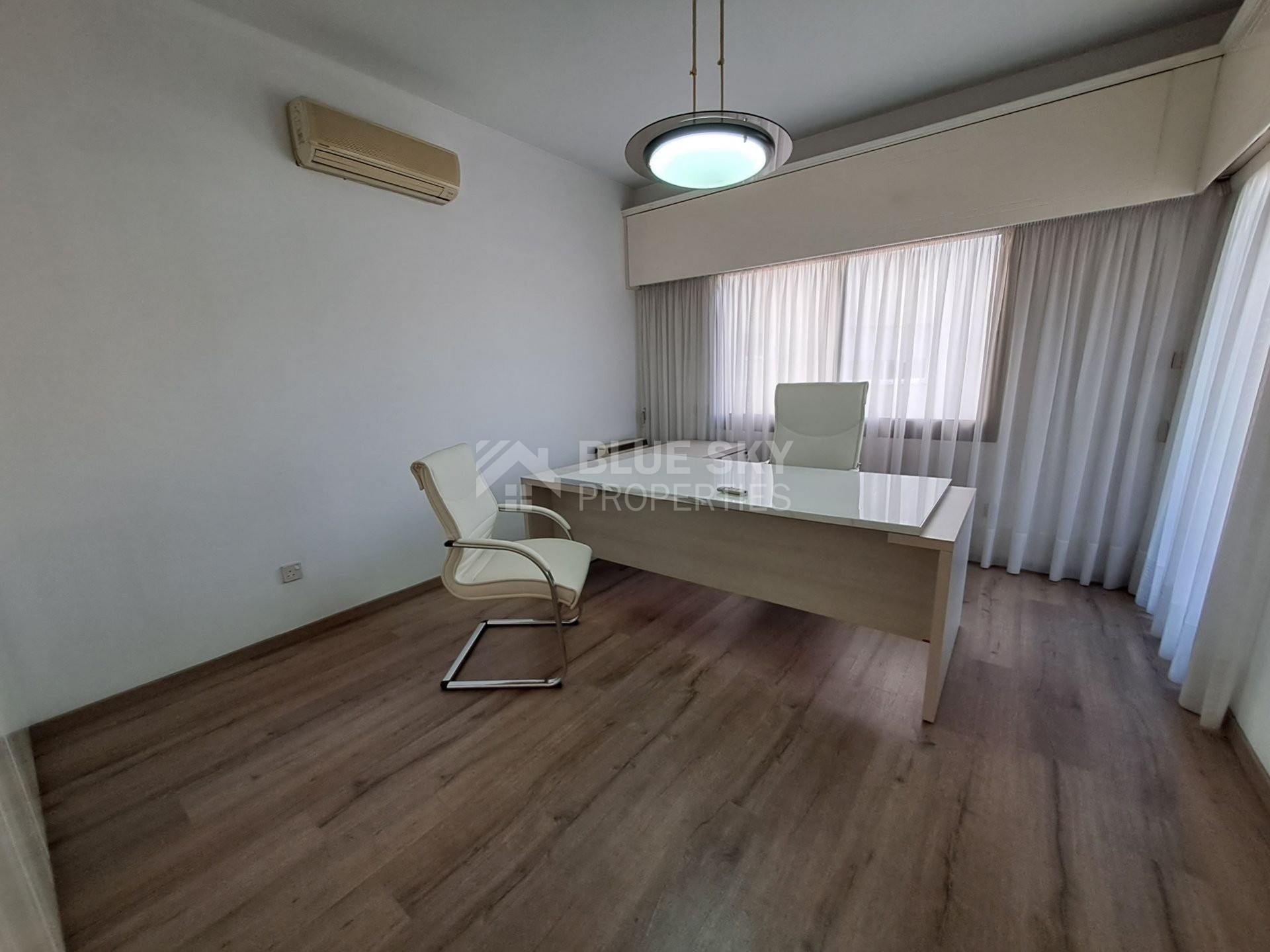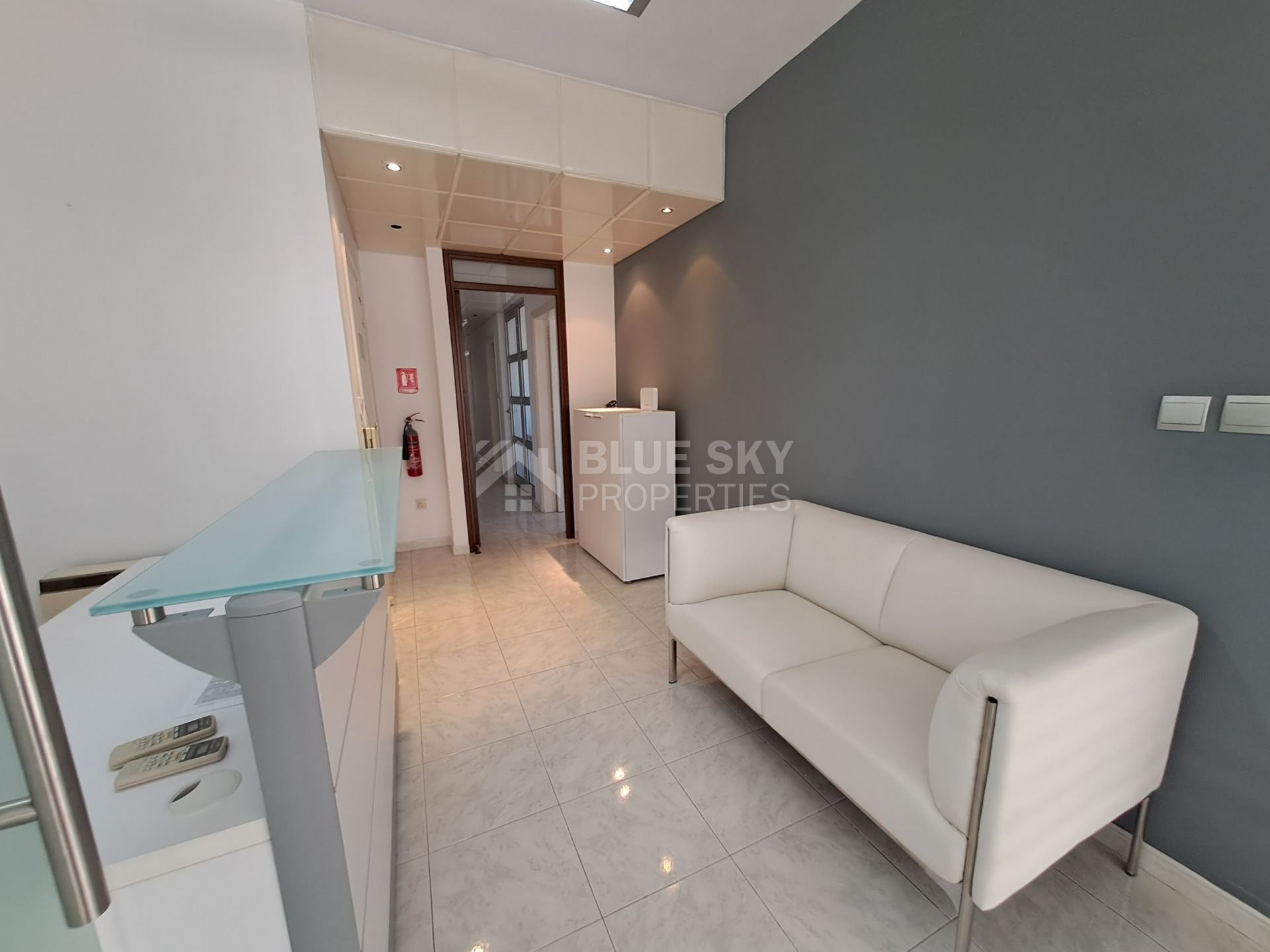 Modern office space available furnished in a renovated commercial building. The area consists of one reception area, one director's office with conference table, an additional two offices, separate kitchen and 2 wc on the 2nd level and two offices, 1 wc and open plan area on the 1st floor. The two offices are linked by an internal staircase. Direct access to Spyrou Kyprianou avenue, easy access to the highway and all amenities are within close proximity. Please call for further information and a viewing.