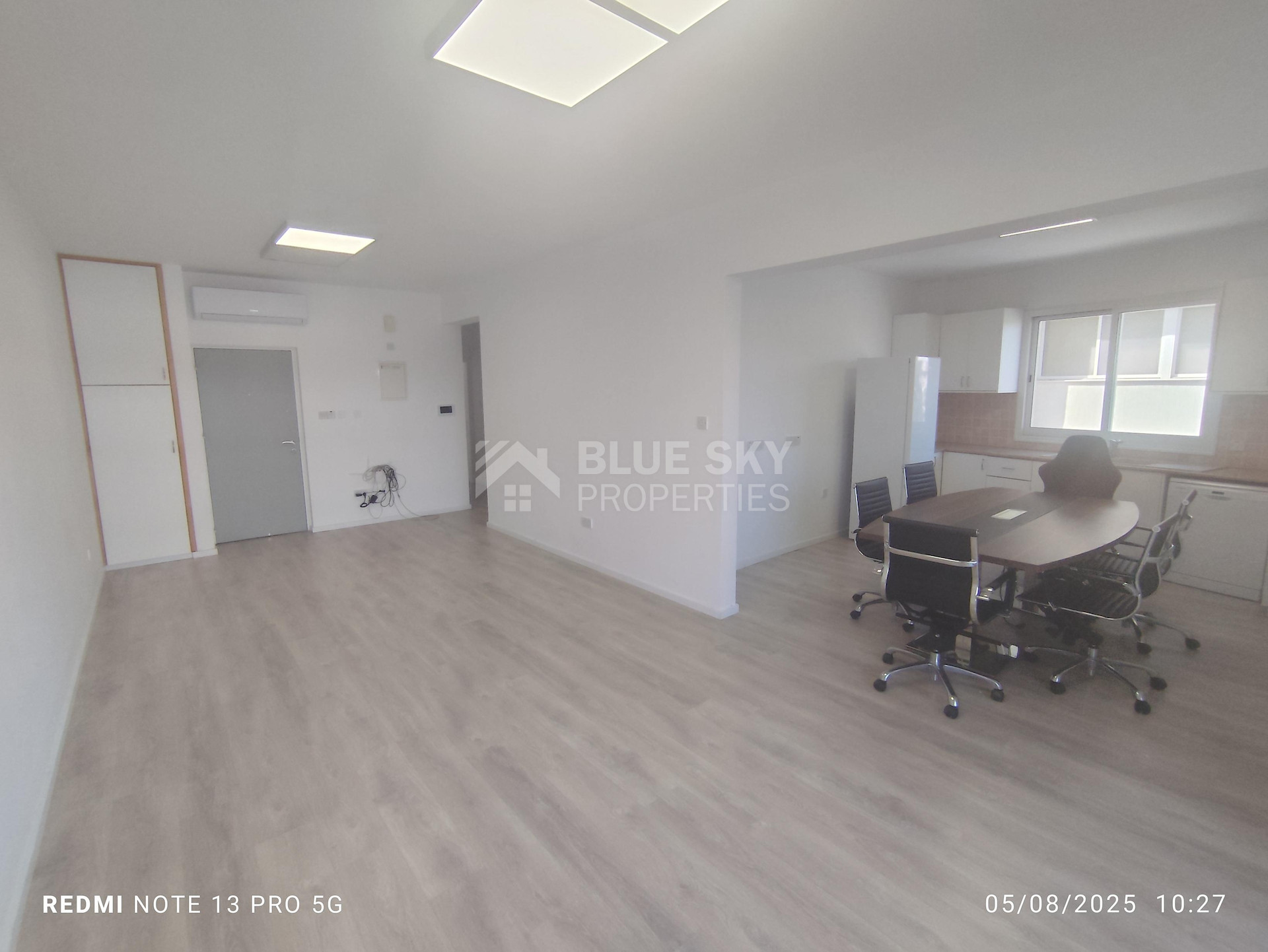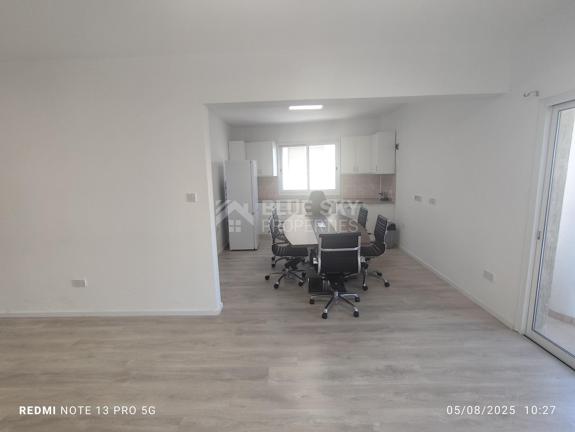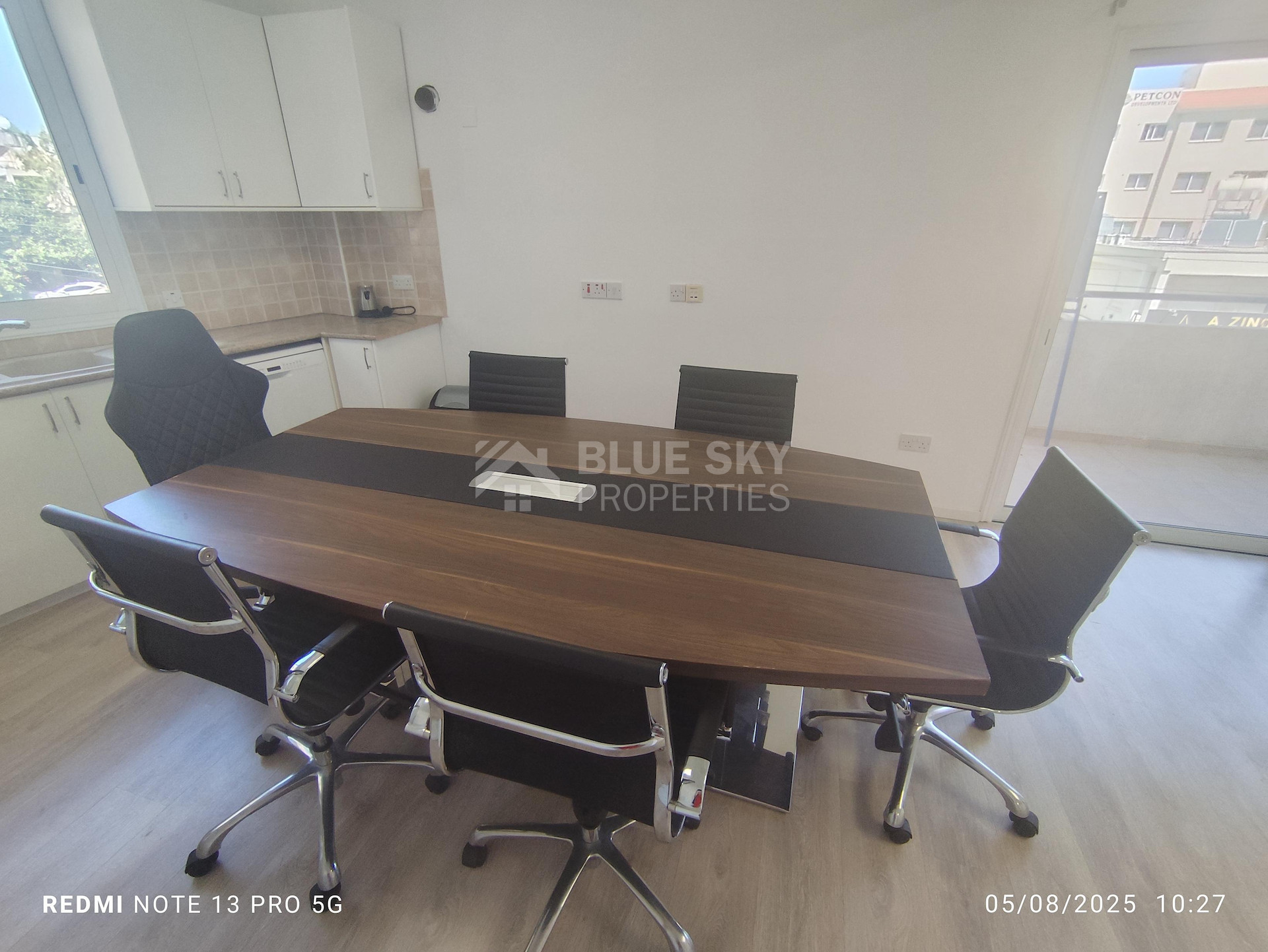 The office is 100 square meters and has easy access to main roads and all services and amenities .It is located on a main road , has one covered parking space , two w.c.. and one bathroom. The office is furnished and has all the electrical appliances such as refrigerator and dishwasher. It is a very nice and functional office. Also it has new air conditioning units, laminated flooring, professional office lighting structured cabling and one balcony overlooking the main road.