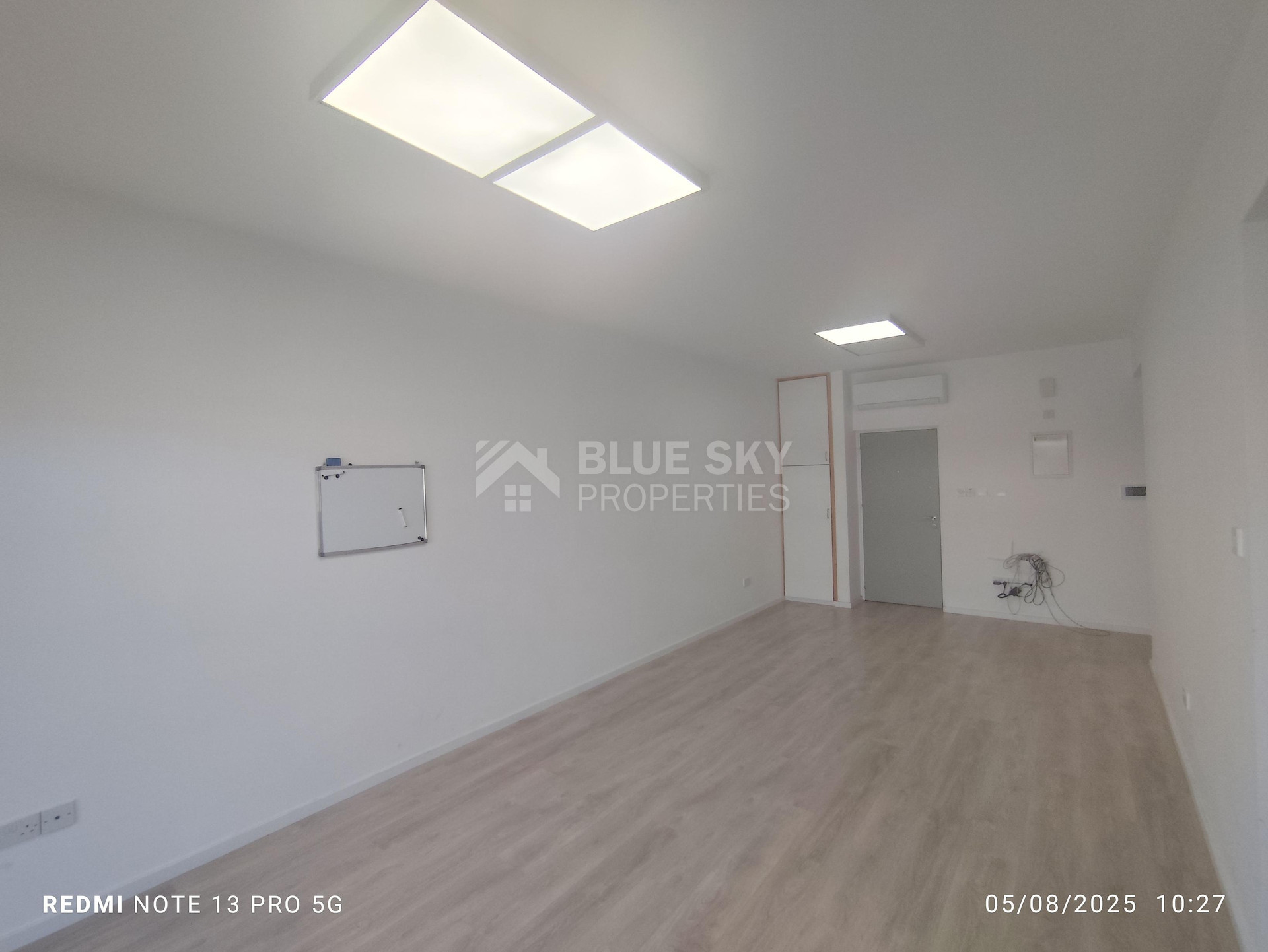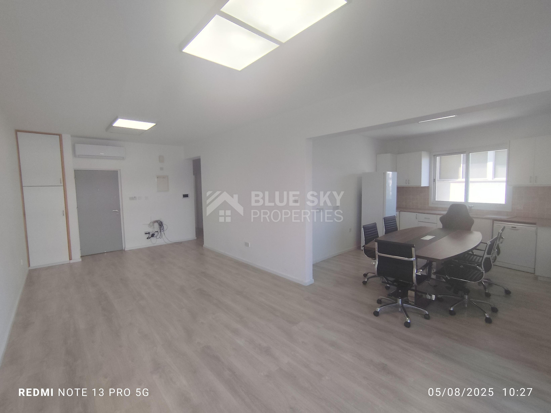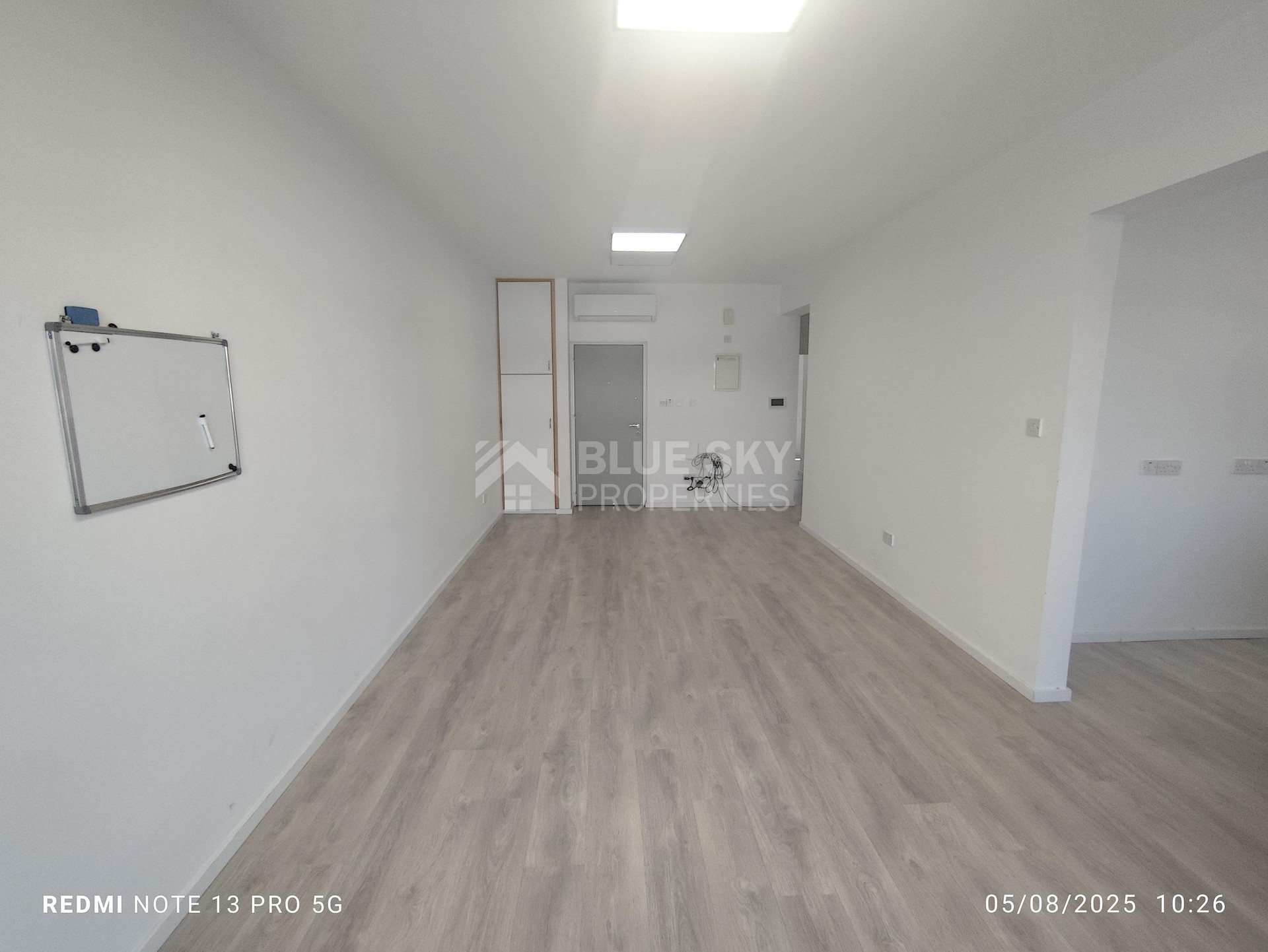 The office is 100 square meters and has easy access to main roads and all services and amenities .It is located on a main road , has one covered parking space , two w.c.. and one bathroom. The office is furnished and has all the electrical appliances such as refrigerator and dishwasher. It is a very nice and functional office. Also it has new air conditioning units, laminated flooring, professional office lighting structured cabling and one balcony overlooking the main road.