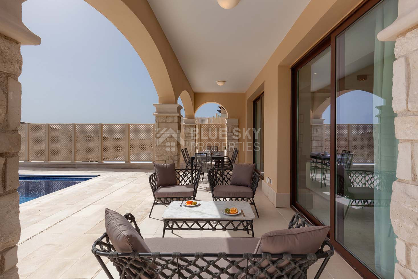 The property comes fully furnished with patio furniture, electrical appliances, and private parking, making it a turnkey opportunity for luxurious living in Aphrodite Hills.