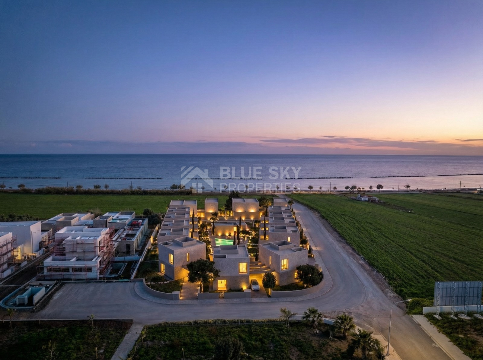 A luxury beachfront villa development located near a prime coastal area in Paphos, Cyprus. The development features modern, high-end residences designed for contemporary Mediterranean living.