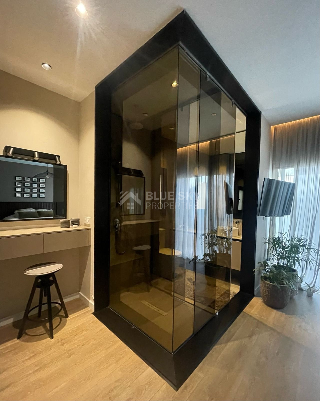 En suite shower, Fitted wardrobes, Garden