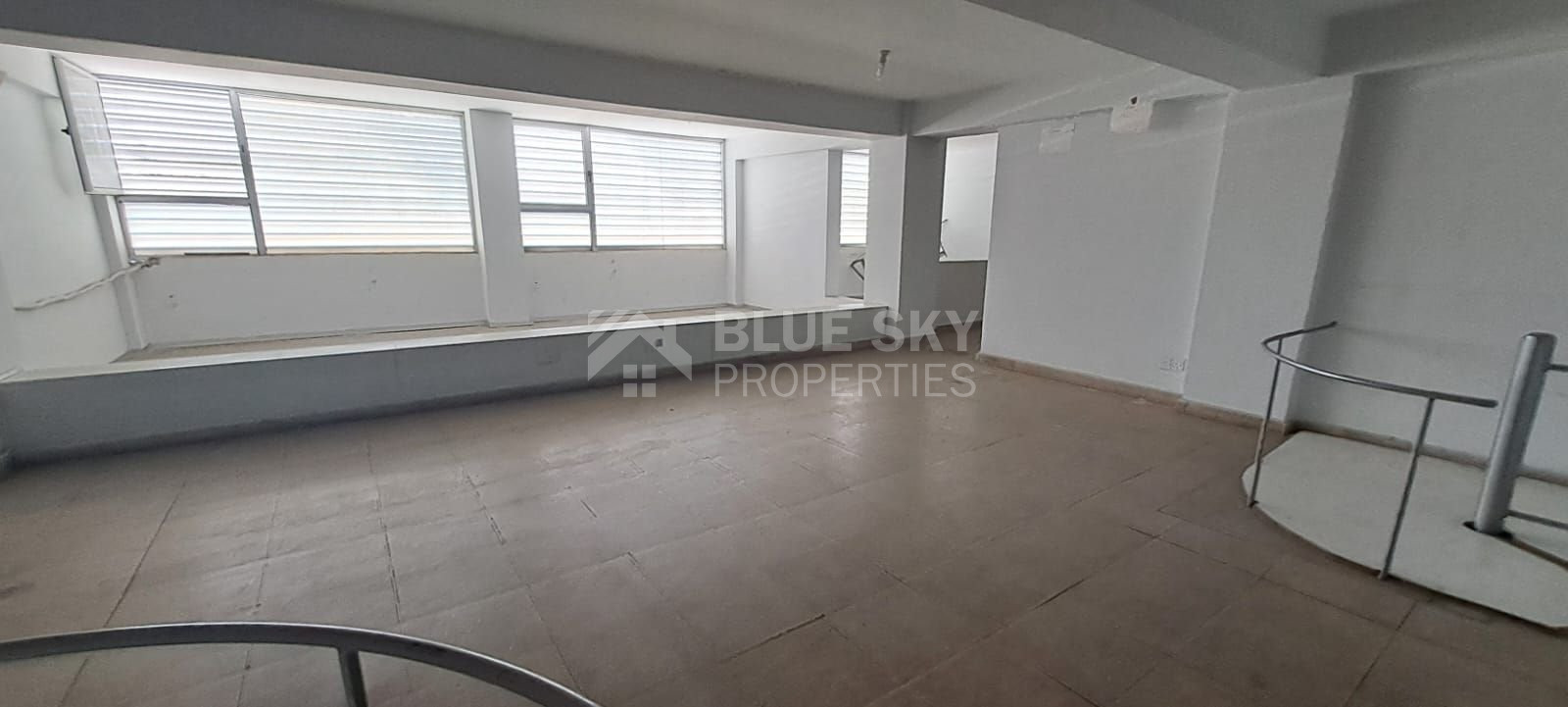 Spacious ground-floor shop available for rent on a bustling commercial road in Limassol, offering 197m² of space—119m² on the ground level plus a 78m² mezzanine. The unit includes two WC and a kitchenette, with no designated parking. Conveniently located within walking distance to the town center and close to all amenities, with easy access to Makarios Avenue. Contact us to arrange a viewing