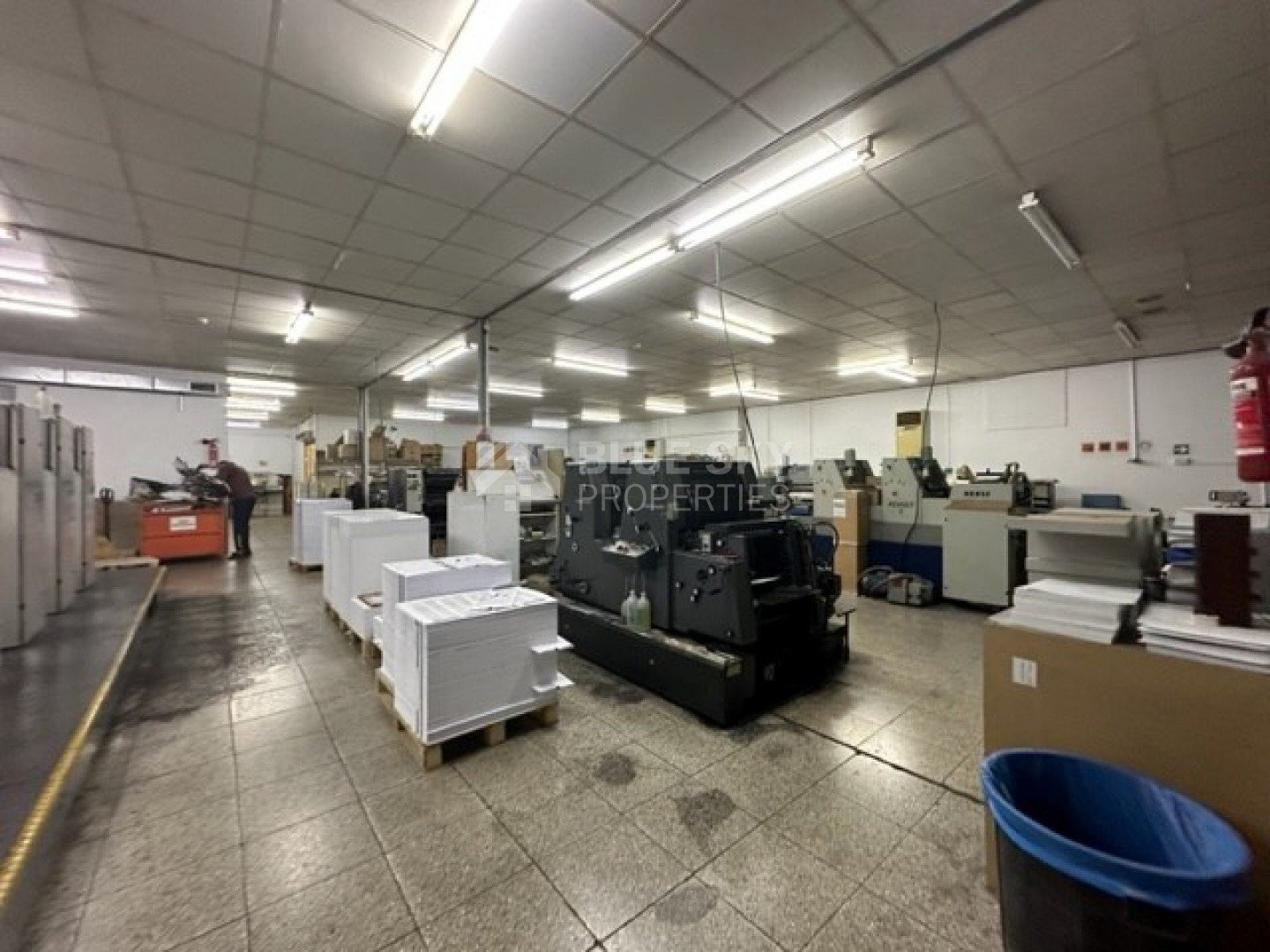 Warehouse in Agios Athanasios industrial area consisting of2,000 m² internal covered area consisting of Warehouse with high ceilings at the rear end of the building and reception area, 5 offices, 6 wc and kitchen at the front of the building. There are a further 5 offices on the upper front level of the building.The warehouse is in excellent condition. Some photos show lower ceilings in some areas which have been covered for their business purposes, however the lower ceiling panels can be removed in order to give the same height as the higher ceilings. six metres width on either side of the warehouse1,800 warehouse space200 sqm office spaceGovernment lease hold.